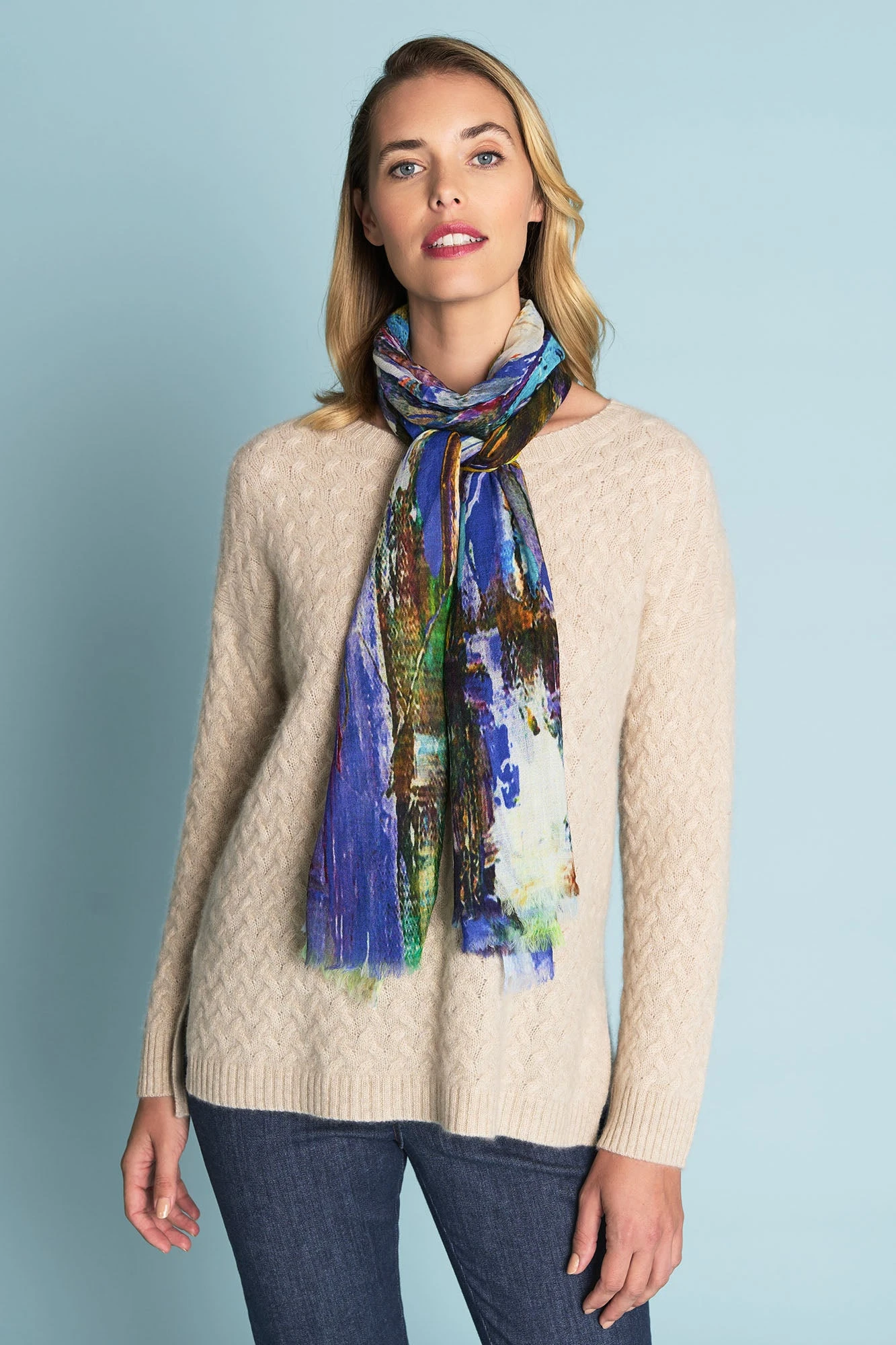 Crafted from a silk and wool blend, this soft and lightweight Abstract Paint Scarf is an artistic explosion of colour. Inspired by a contemporary painting you’ll be walking art in this modern and colourful accessory.