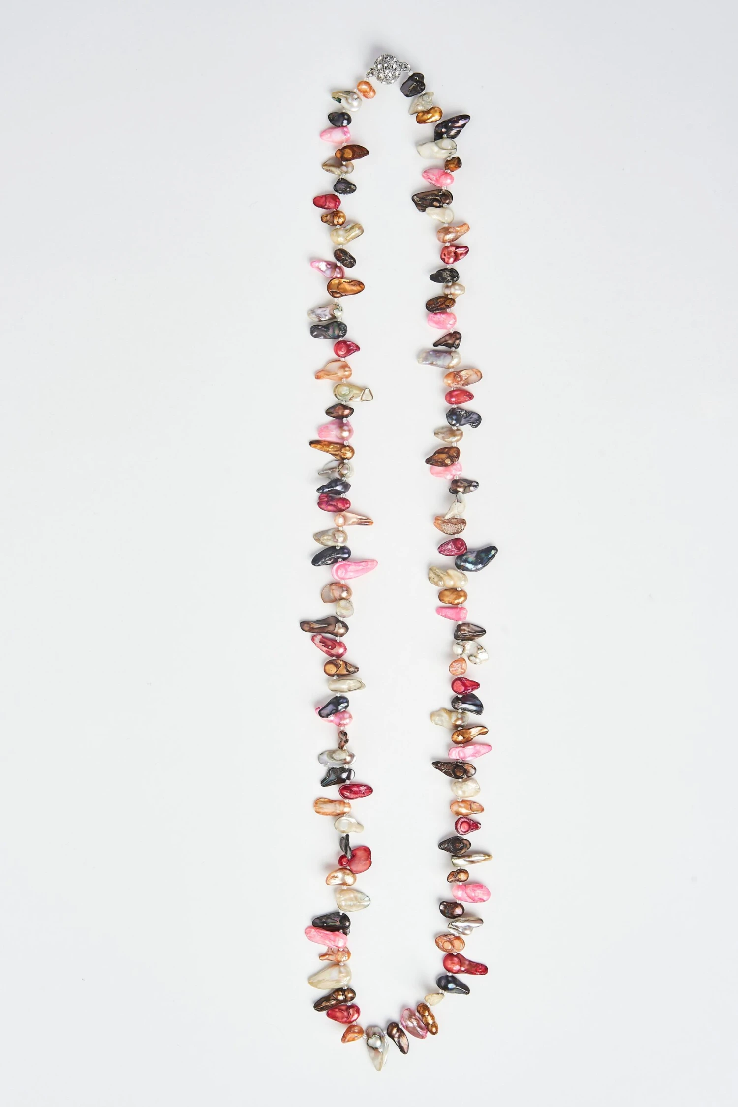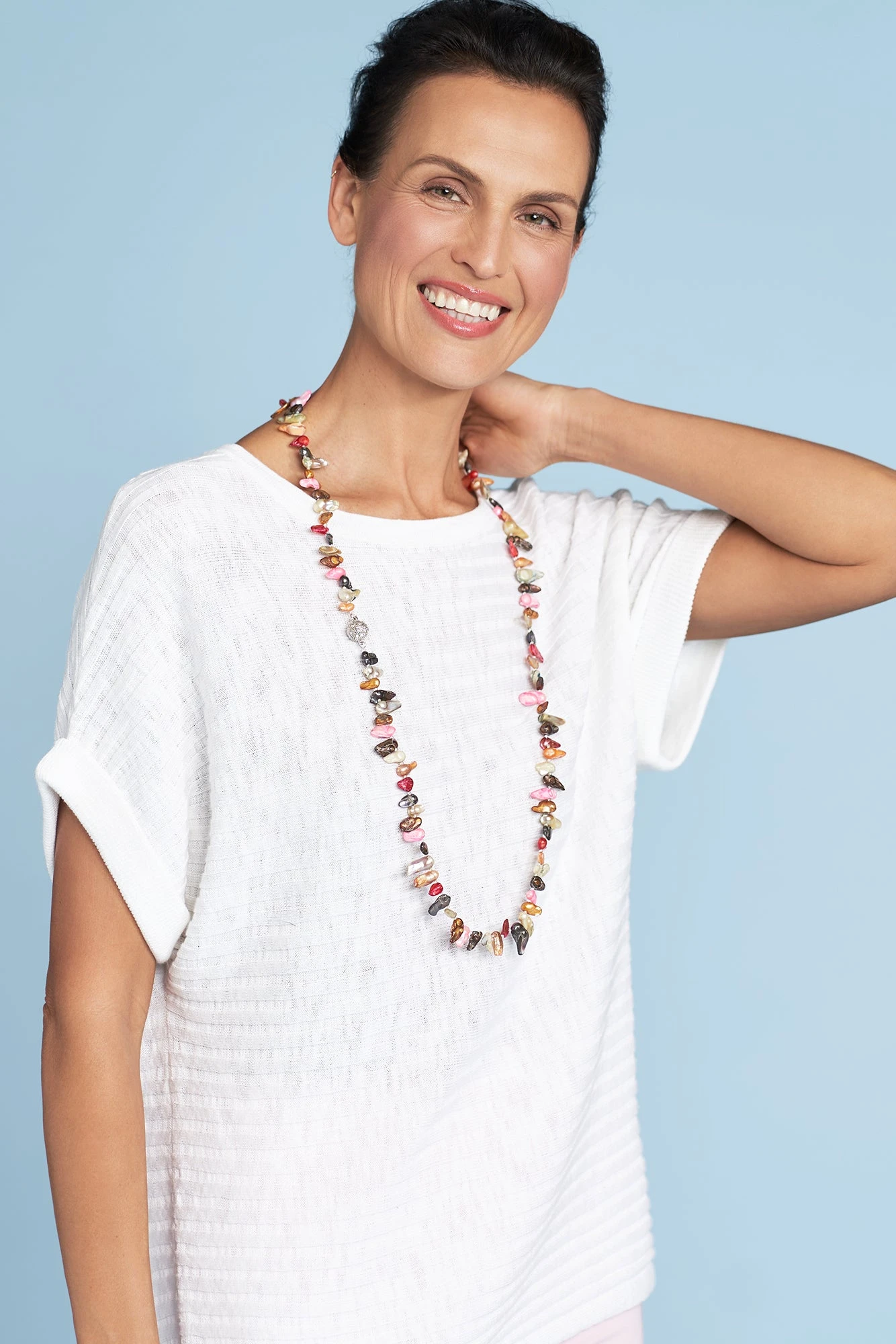 The south of France comes to life in this colourful Abstract Shell Necklace. Part of our Grasse collection, this fun accessory features a myriad of stacked shell beads in various shapes and sizes finished with a pave metal clasp adorned with diamantes. Complete a matching set with our Abstract Shell Bracelet.