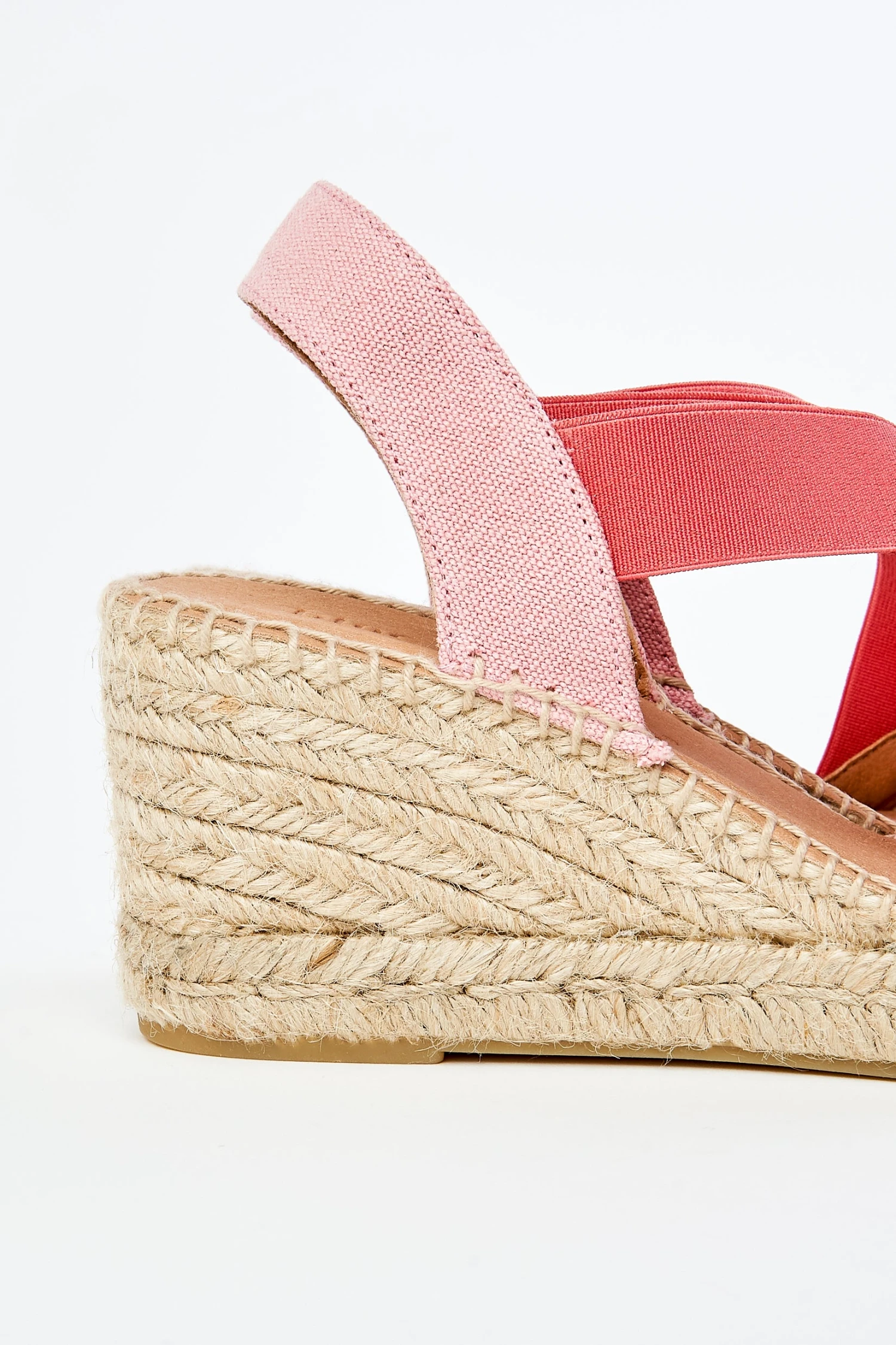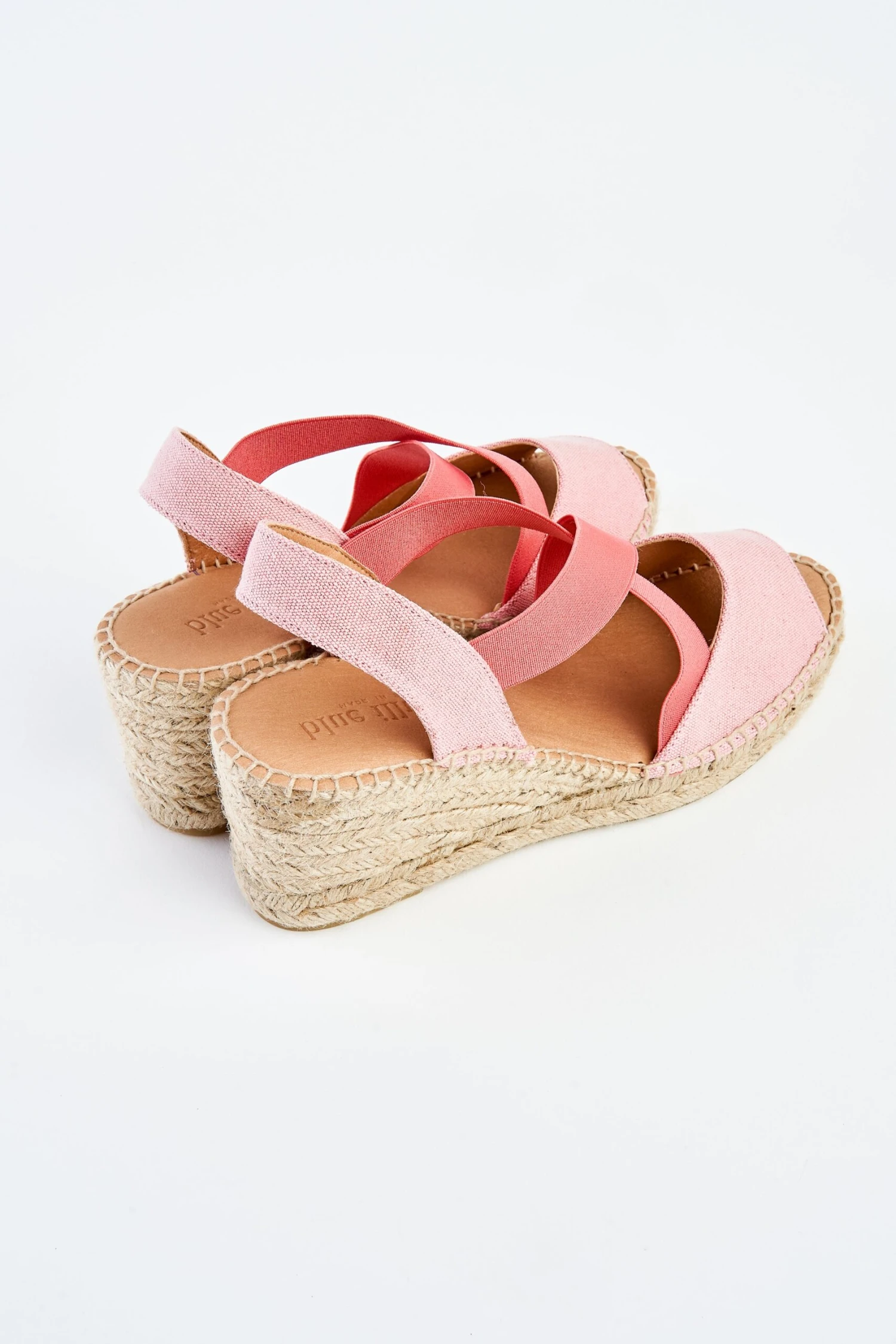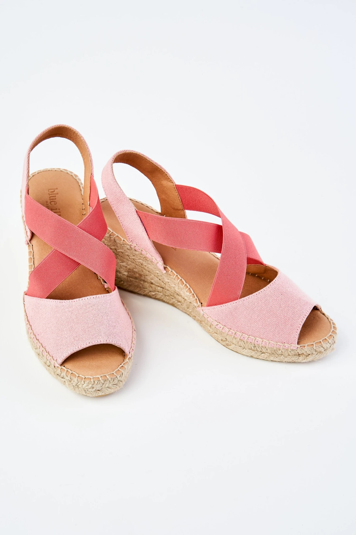 Made in Spain, this charmant espadrille showcases the Icy Pink and Coral colours of our Grasse collection. Featuring a fashionable cross strap, comfortable cushioned sole and sling back style, this espadrille will soon become an everyday favori.