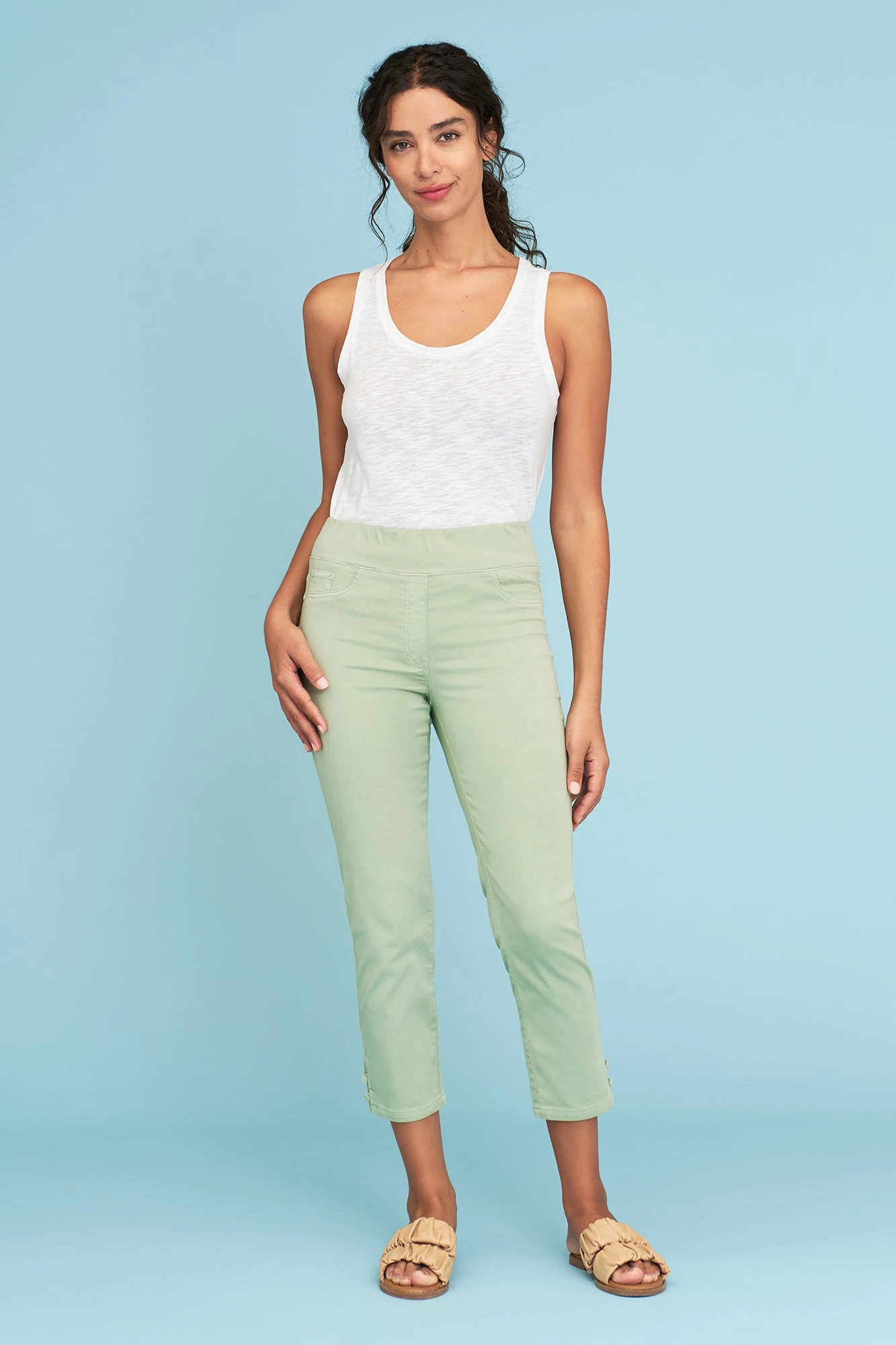 Our new perfect fit Bengajean® is here, showcasing a gorgeous pistachio hue. Expertly crafted for comfort, this ¾ length Bengajean® boasts a slim leg with elasticated waist and easy pull-on style. Featuring a self-covered button detail at the hem, this Bengajean® creates the perfect base for you to mix and match your favourite blouses and shirts.