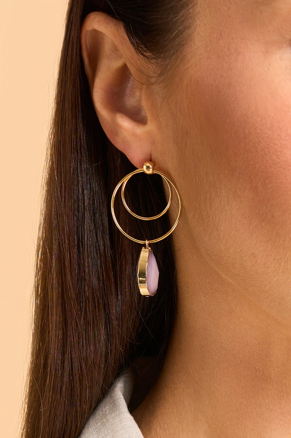 Complete an elegant look with our sparkling Bluebell Drop Earrings. Featuring an 18k gold plated over brass double hoop and finished with a glimmering statement crystal, this is an accessory that is parfait for your next special occasion.