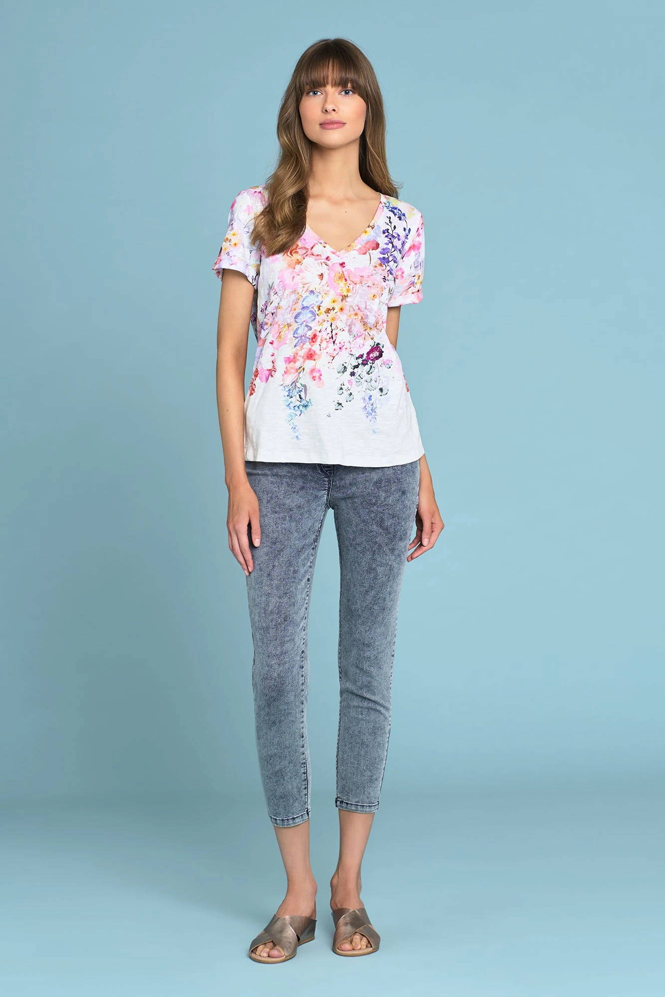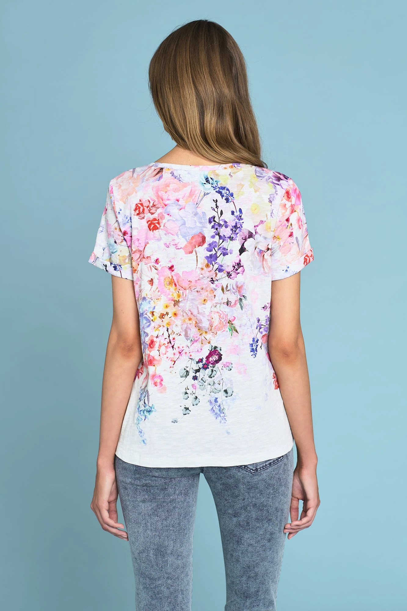 Si romantique! Celebrate 10 years of true love with our limited edition Bengajean® Birthday collection. This beautiful t-shirt is crafted from 100% organic cotton and features a rolled cuff sleeve and elegant V neckline. It’s a summer floral essential that looks perfect when paired with our signature Bengajean®.
