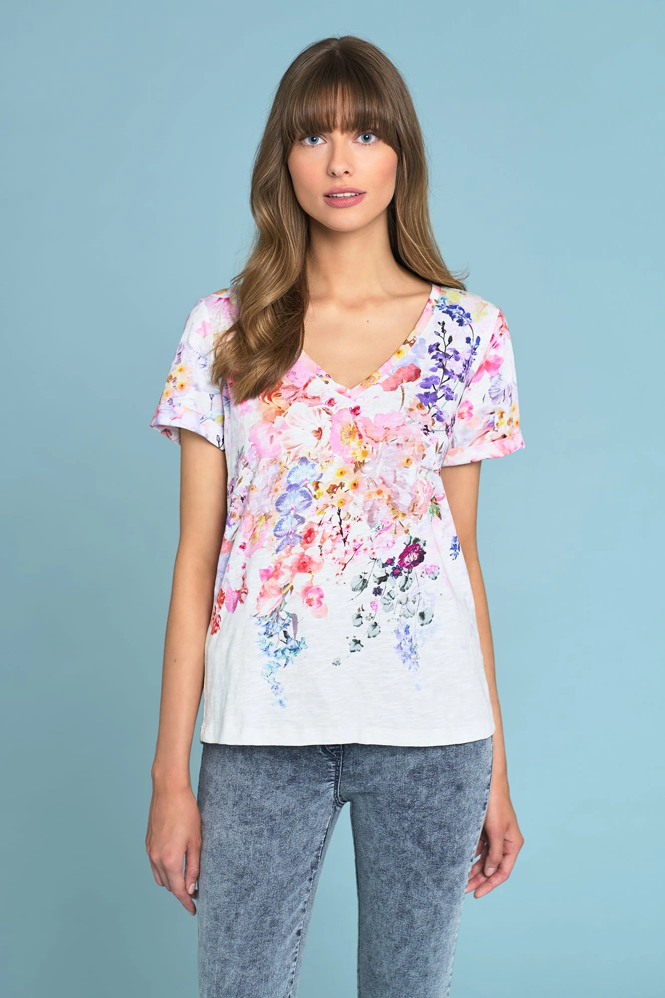 Bouquet Print V-Neck T-Shirt