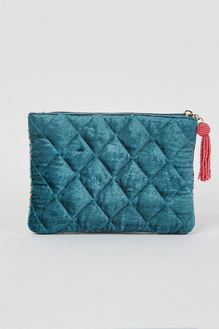 Treat your mum or the mother-figure in your life with this ‘C’ initial velvet purse in Teal. Soft to touch, this purse is embellished with a sparkling floral sequin motif. Featuring a statement seed bead tassel and fun twisted rope edging, this purse makes a personal and practical gift this Mother’s Day.
