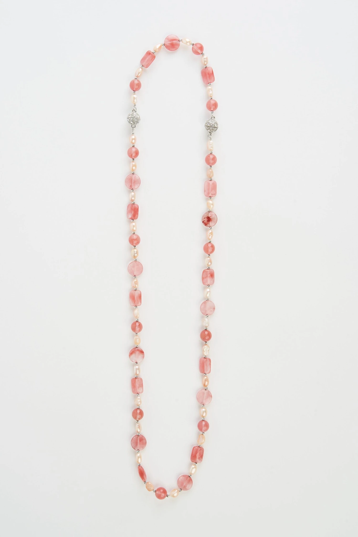 Delight in the sweet colours and whimsical shaped beads featured in our Cannes Pink 2 in 1 Necklace. Wear this accessory as a long necklace or matching bracelet and shorter necklace set. Showcasing freshwater pearls and stones with gold accents, be transported to the south of France with every wear.