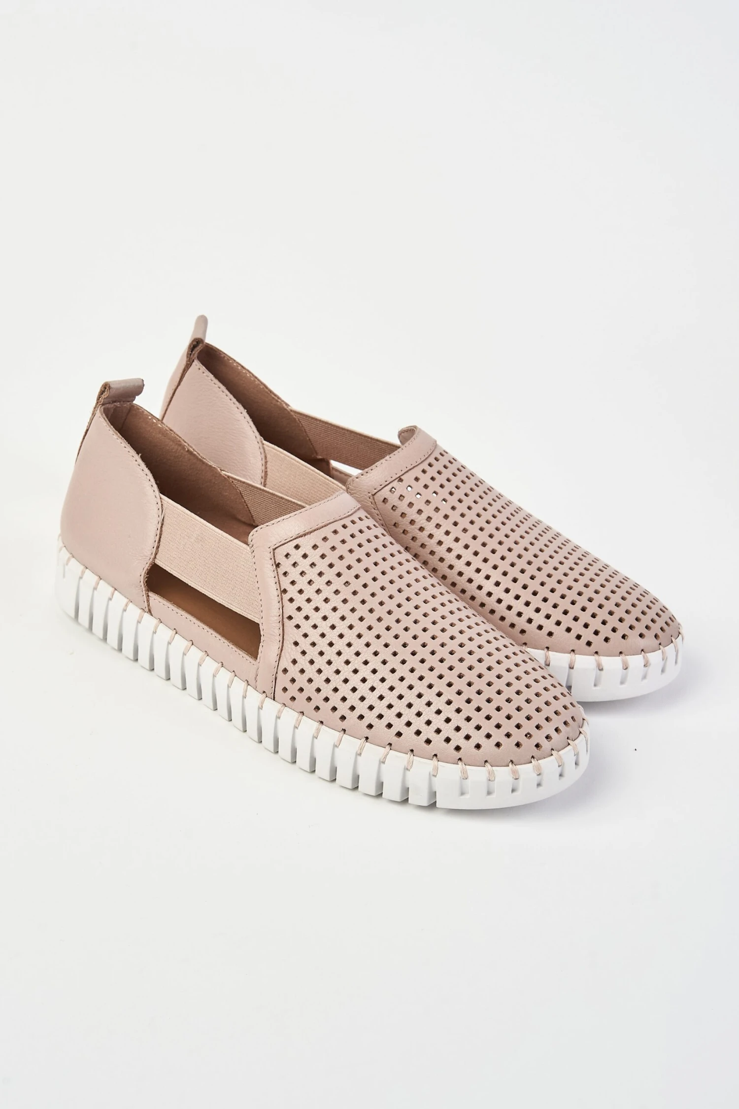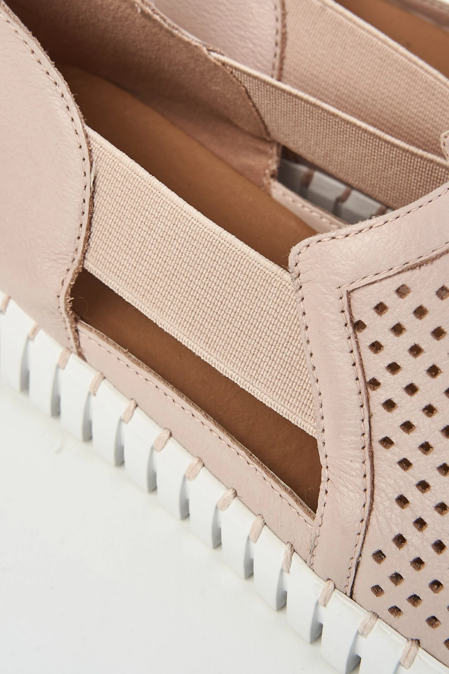 Function and fashion come together for our Carla Cutout Plimsol in Dusty Pink and White. Made from quality 100% leather, these shoes are crafted with comfort and breathability in mind, featuring a chic cut out design with elastic side straps, a perforated leather upper and a white contrast pleat sole.