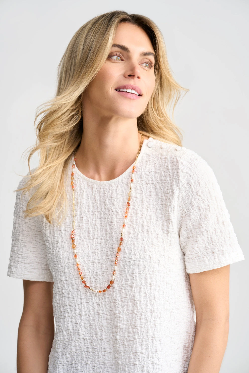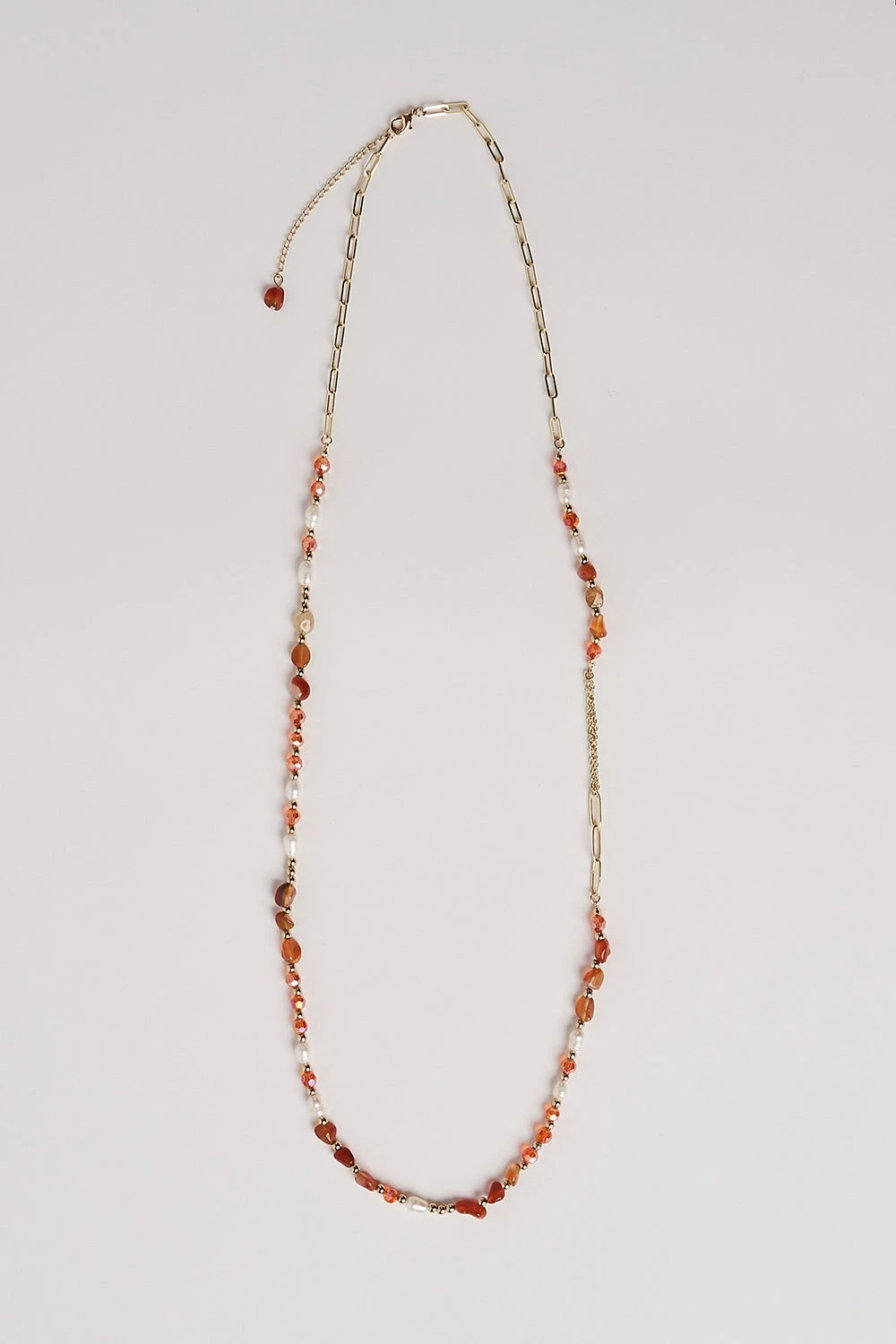 The Coral Beaded Necklace is all about simple styling. Crafted using an alluring combination of freshwater pearls, natural stones and glass beads on a delicate chain, add this fresh hint of colour to your daily style.