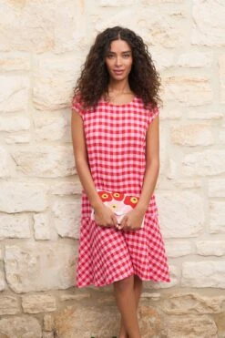 Part of our Cannes collection, this midi-length dress boasts a beautiful colour combination of vibrant red and soft pink. Crafted from a comfortable crinkle cotton with a swing hem and fashionable flounce, this dress is designed for all-day wear. For a complete look add our Notre Dame Sling Back Wedge, Poppy Beaded Clutch and Ceramic Drop Earrings.