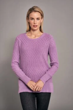 Add a touch of colour to your wardrobe with this textured lilac jumper. Crafted from 100% cotton, this jumper will be an everyday favori. Denim-friendly, it looks gorgeous with our new Bengajean® in Black Velvet.