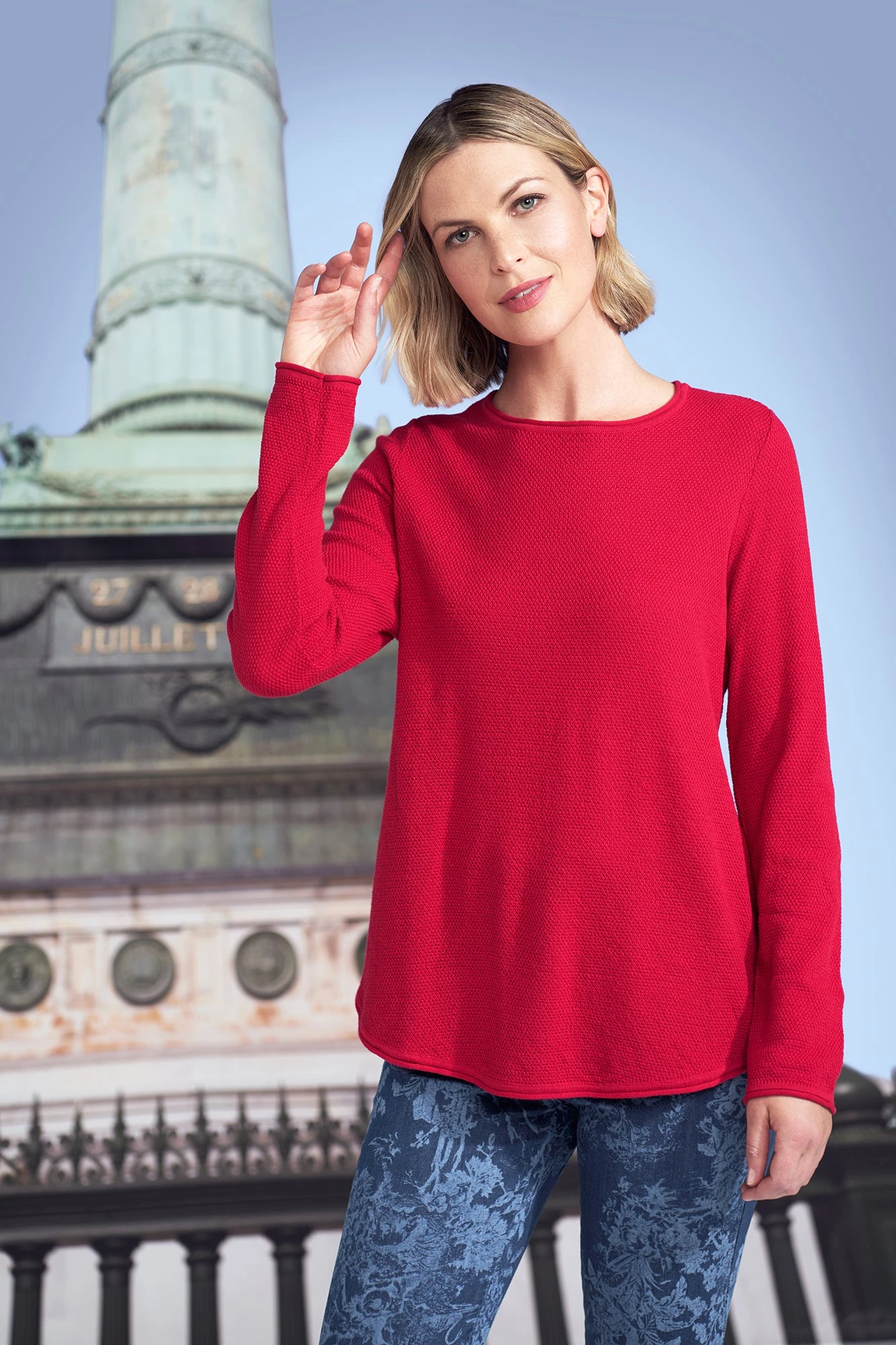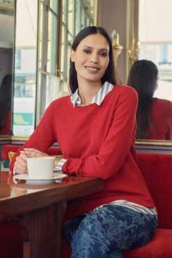 Available in Rouge, our Cotton Scoop Hem Jumper is a celebration of French style. A timeless Blue Illusion design, this 100% certified organic cotton jumper is bound to keep you warm, no matter what the weather.