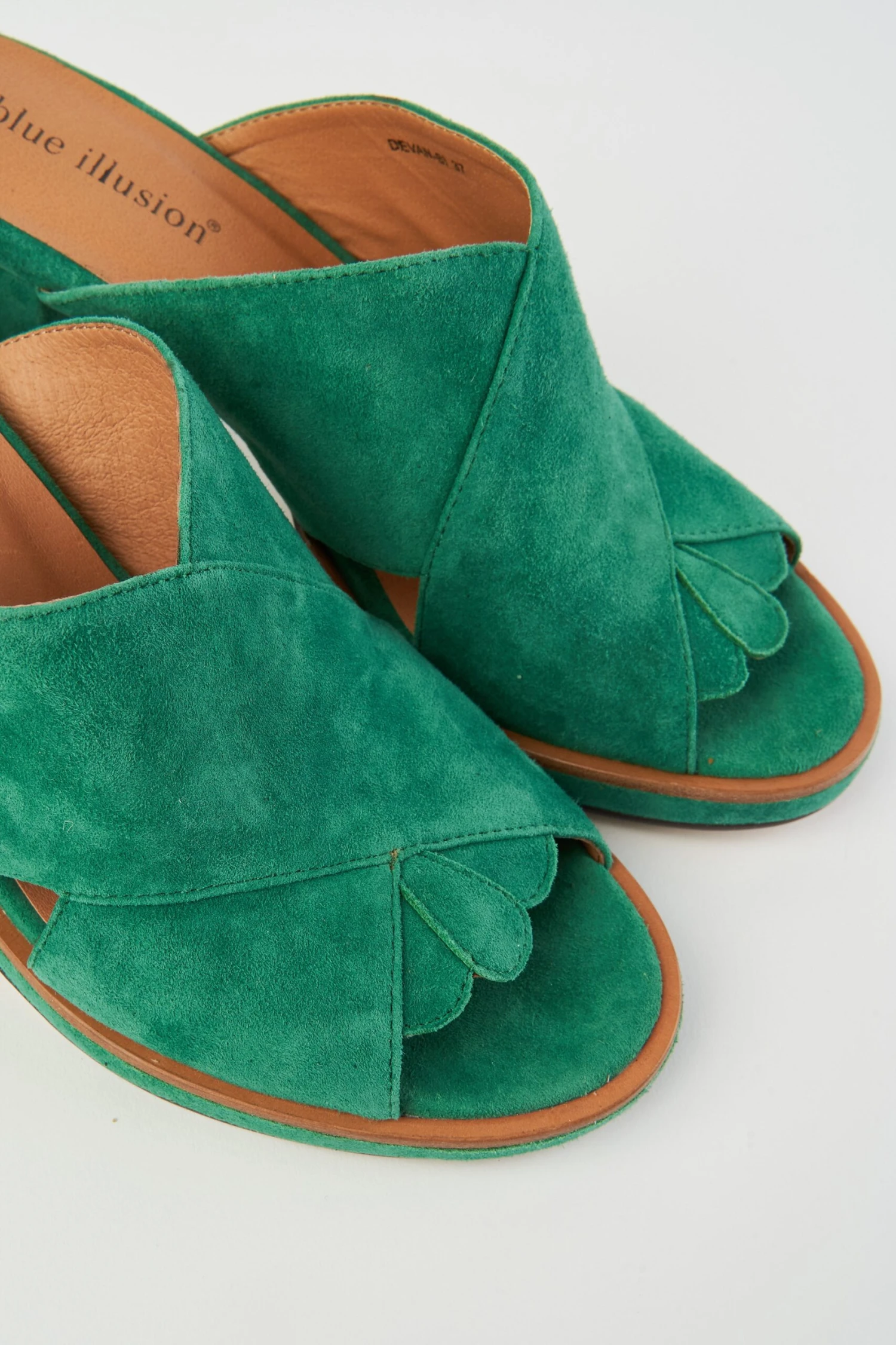 Ultra-chic, ultra-comfortable. Introducing our Devan Suede Heel crafted from 100% suede. In a bold shade of Green, this heel is crafted from 100% authentic leather and features an on-trend cross strap and peep toe with scalloped edging. Complete your look with this fun pop of Green.
