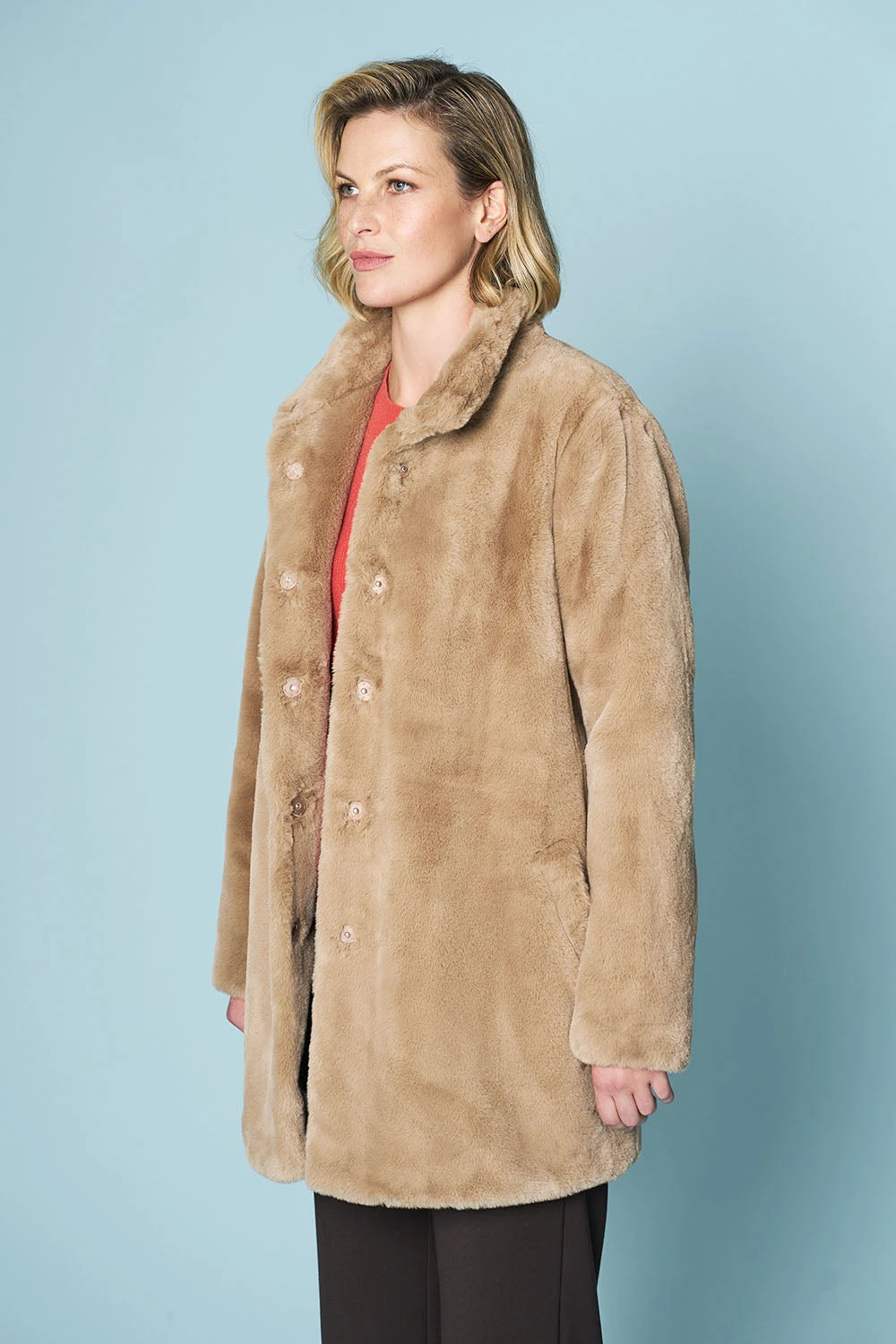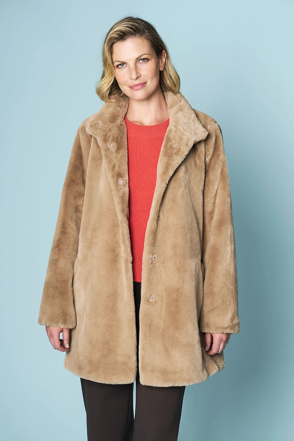 This fabulous and luxe faux fur coat will transform any outfit. From casual jeans to formal dresses, add instant opulence to your look with our Faux Fur Coat, available in Mink. Heavenly soft, this coat is cosy with a stand collar, easy snap button fastening and front pockets. Add some drama, we dare you.