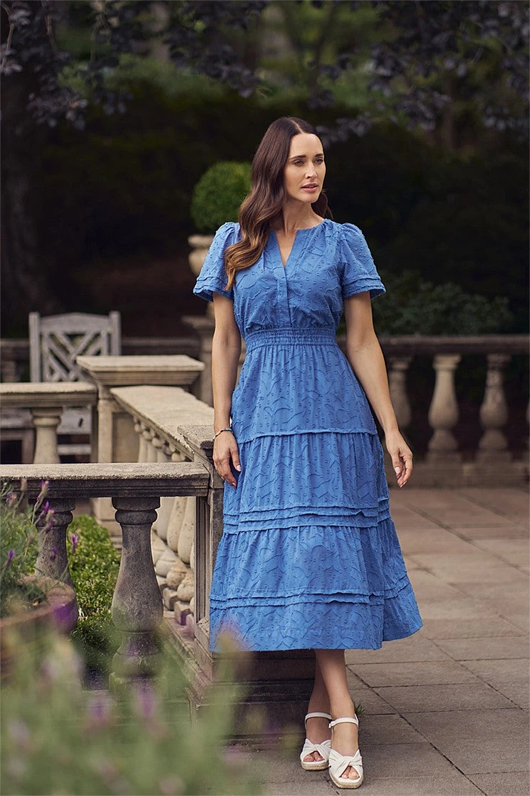 This maxi-length dress is a new shape for Blue Illusion and a highlight of our Place Vendôme collection. Crafted from 100% cotton jacquard and featuring a polka dot and floral clip, pair this beauty with your favourite espadrille for carefree styling.