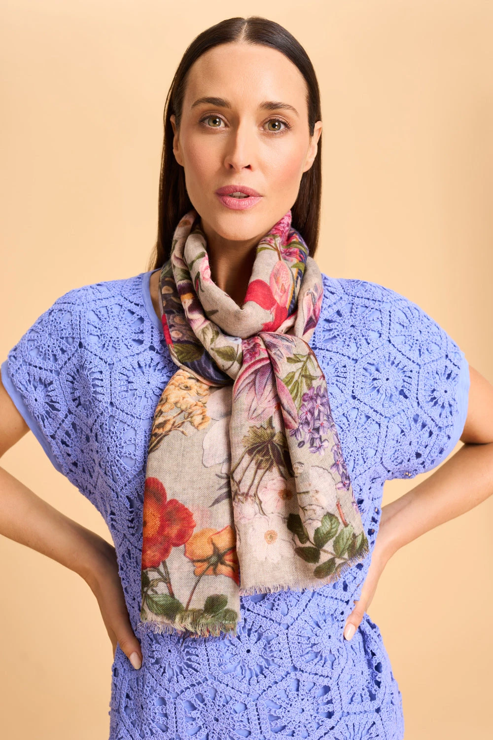 Equal parts charming and whimsical, our Floral Zebra Border Scarf features a zebra striped border, subtle leopard print base and floral design. Creating an overall pared back look, this scarf is soft and warm, crafted from a blend of wool and modal.