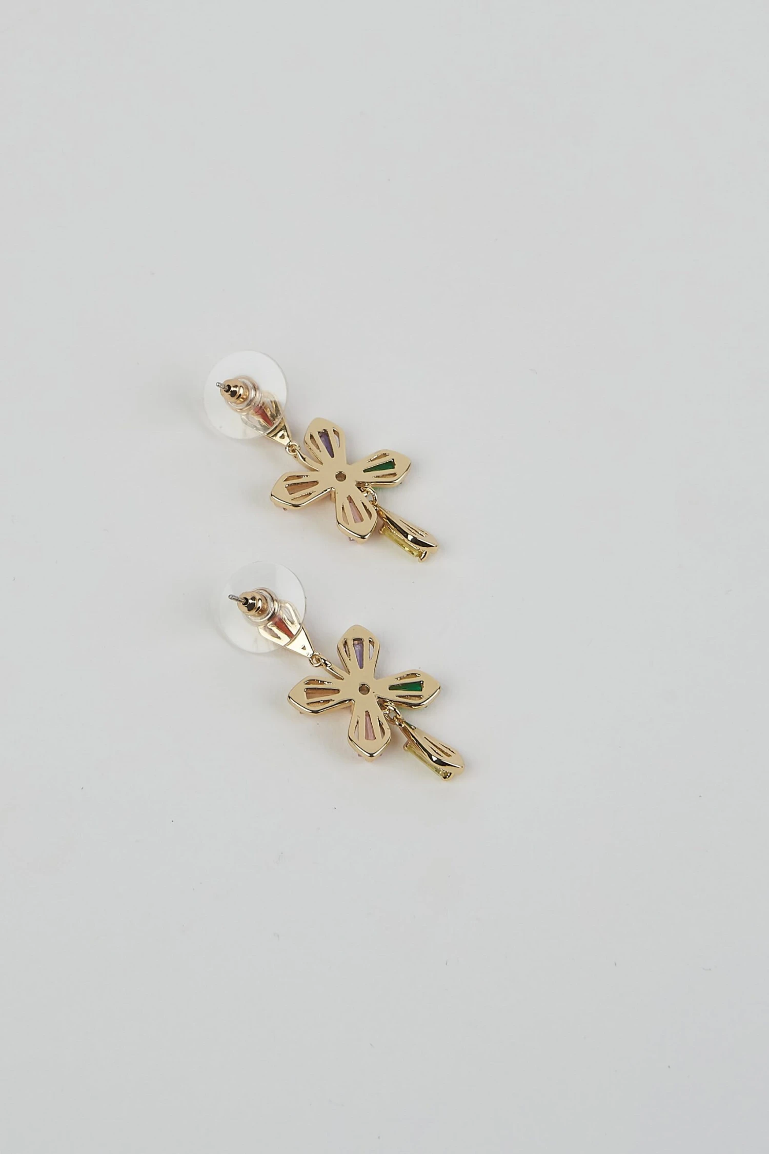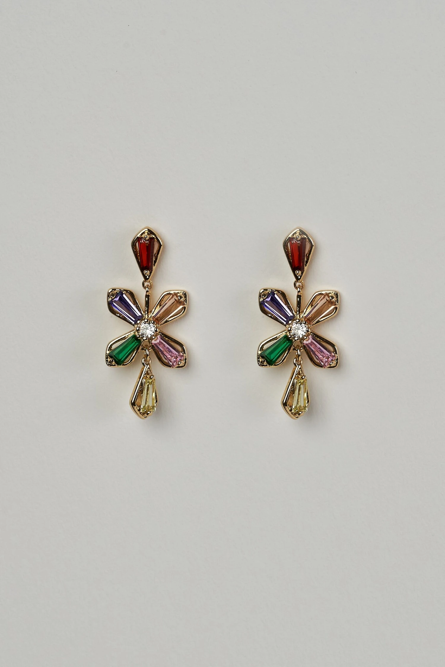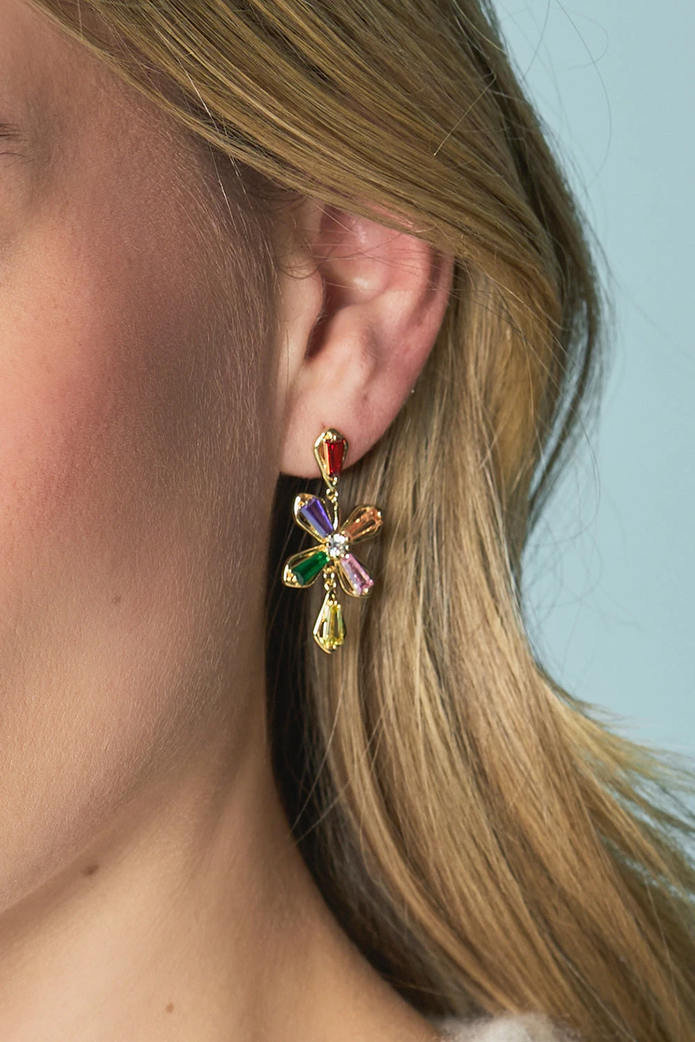 Add a touch of sparkle to your outfit with our Flower Drop Earrings. Featuring sparkling stones to bring this floral design to life, these earrings are lightweight and colourful.