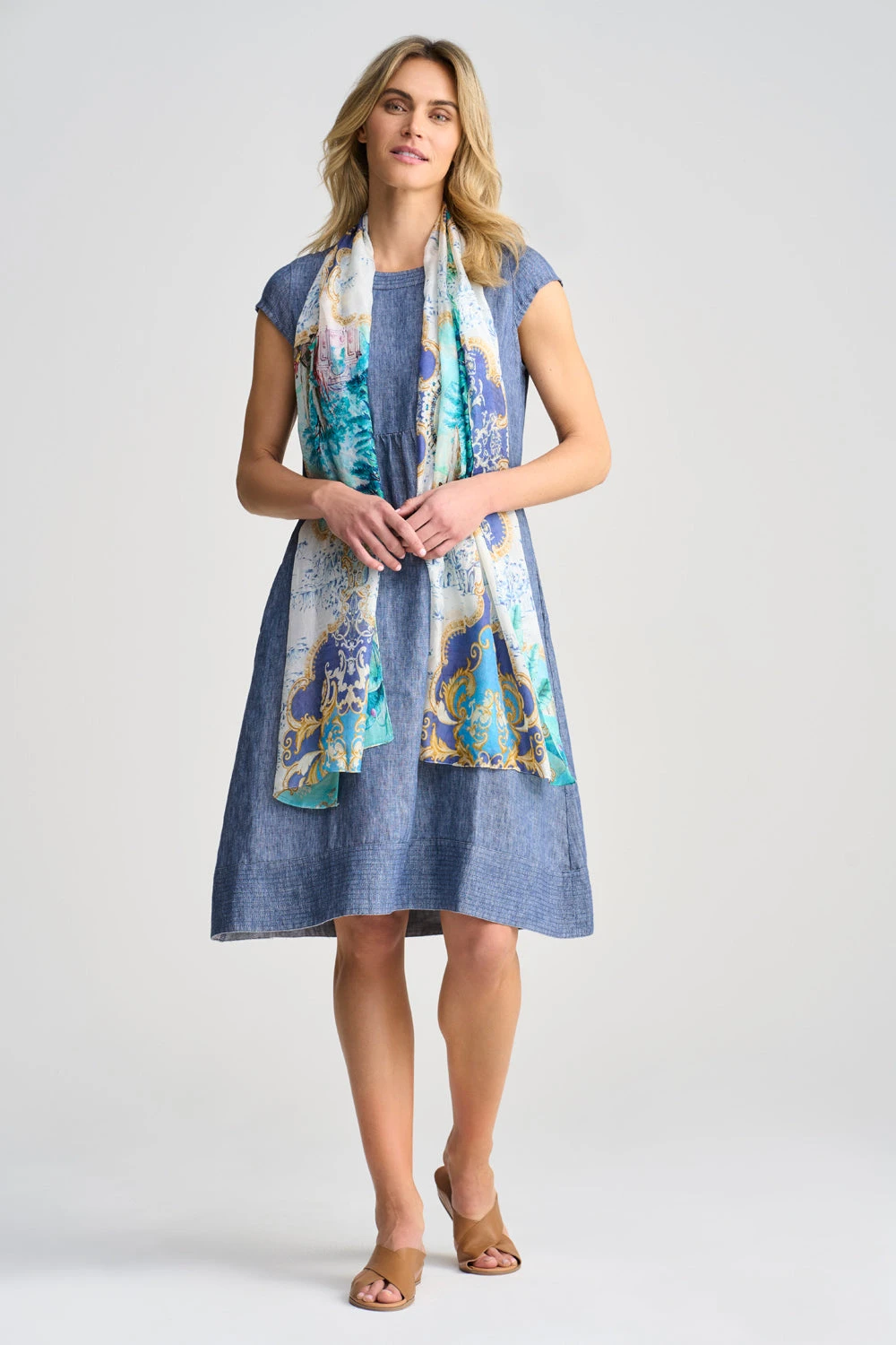 Feel like a true artiste when you step out in our French Artist Silk Scarf. An ode to one of France’s most influential artists Claude Monet, this 100% silk scarf is a fun take on a Toile de Jouy design and features beautiful hues of blue.