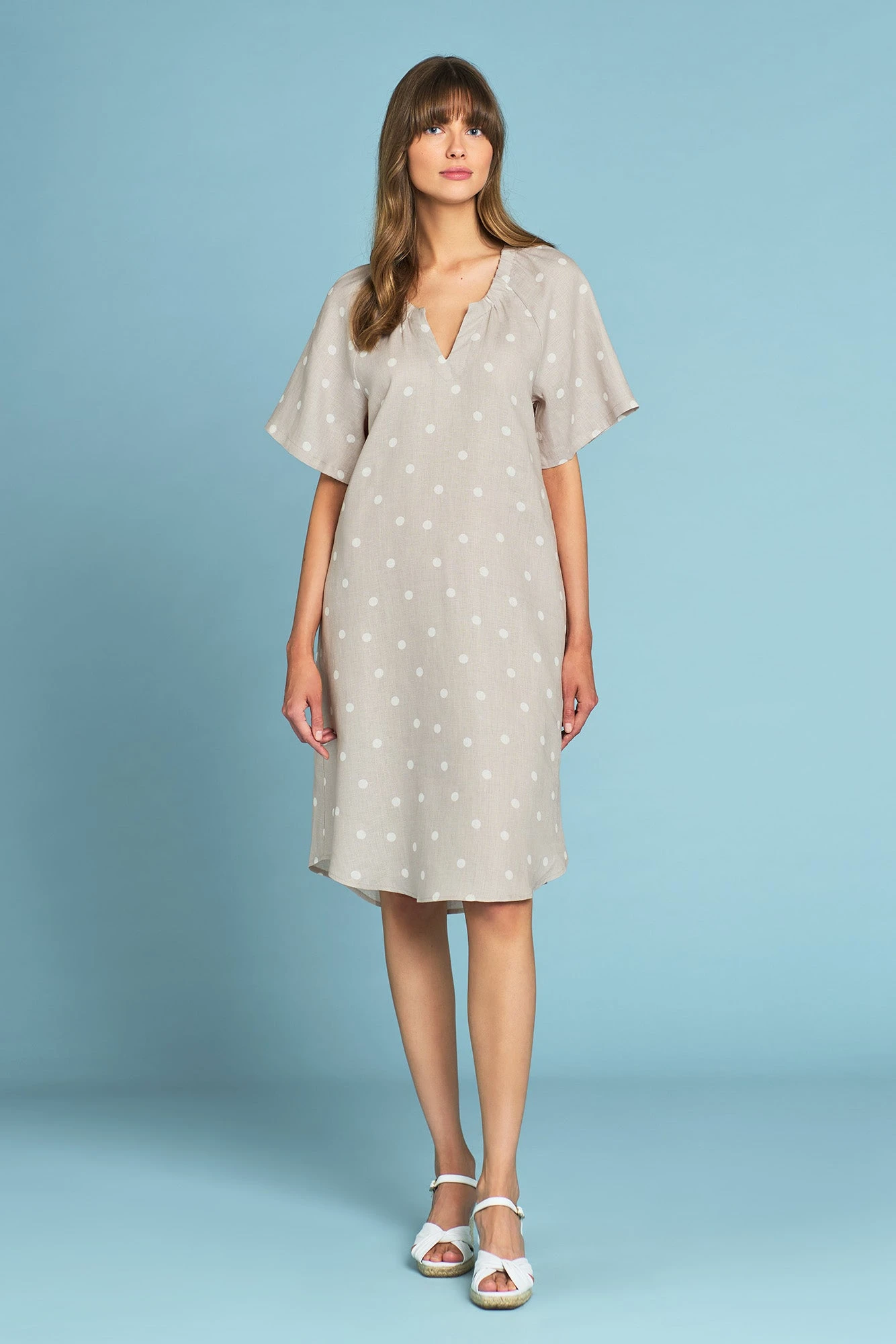 You’ll be seeing spots in our new Gathered French Linen Dress! Crafted from 100% French Linen in a relaxed fit, this dress features hidden pockets and a smart high low scoop hem. Lightweight and breathable, this dress is available in Pebble and White Spot, perfect for your next picnic or adventure à la plage.