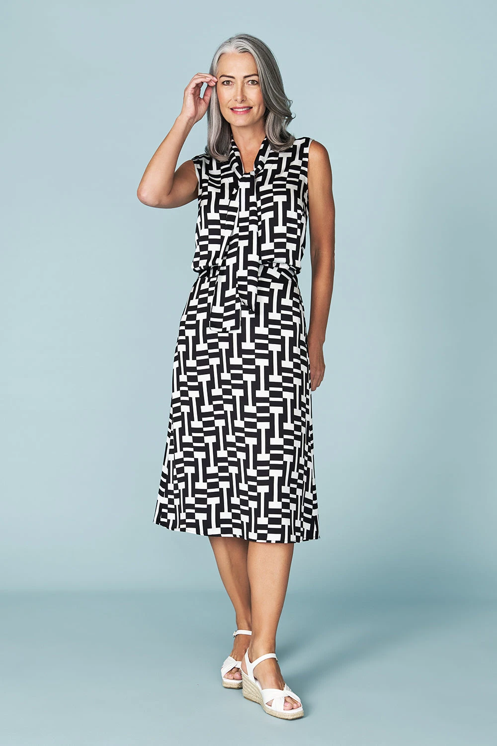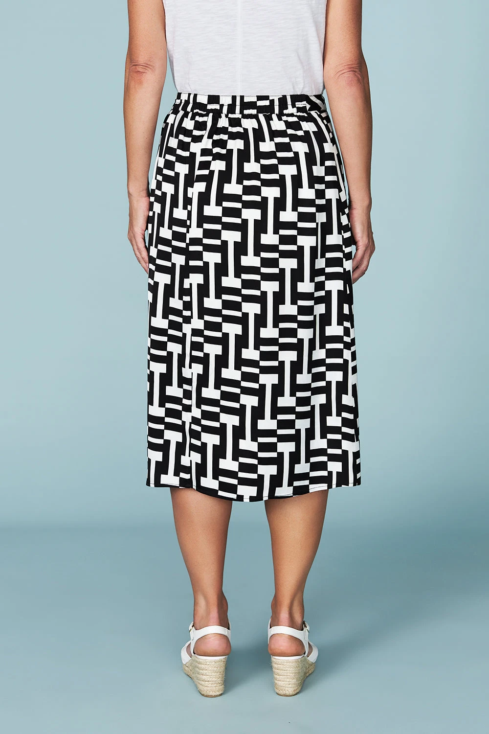 Crafted from 100% viscose, this A-line skirt features the bold Black and White print of the collection. Pair with the Tie Front Sleeveless Blouse and a colourful accessory for head-to-toe style. Magnifique!