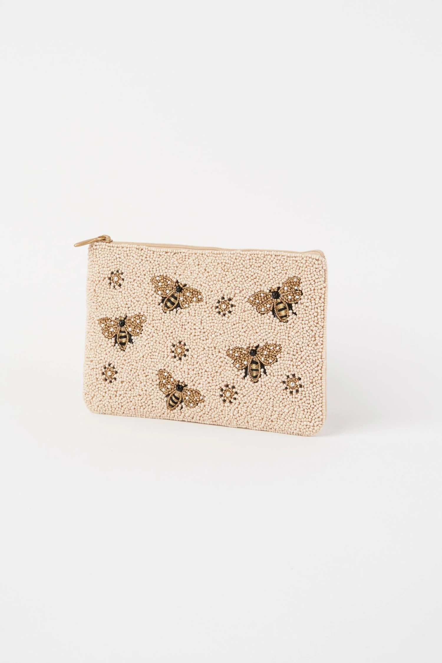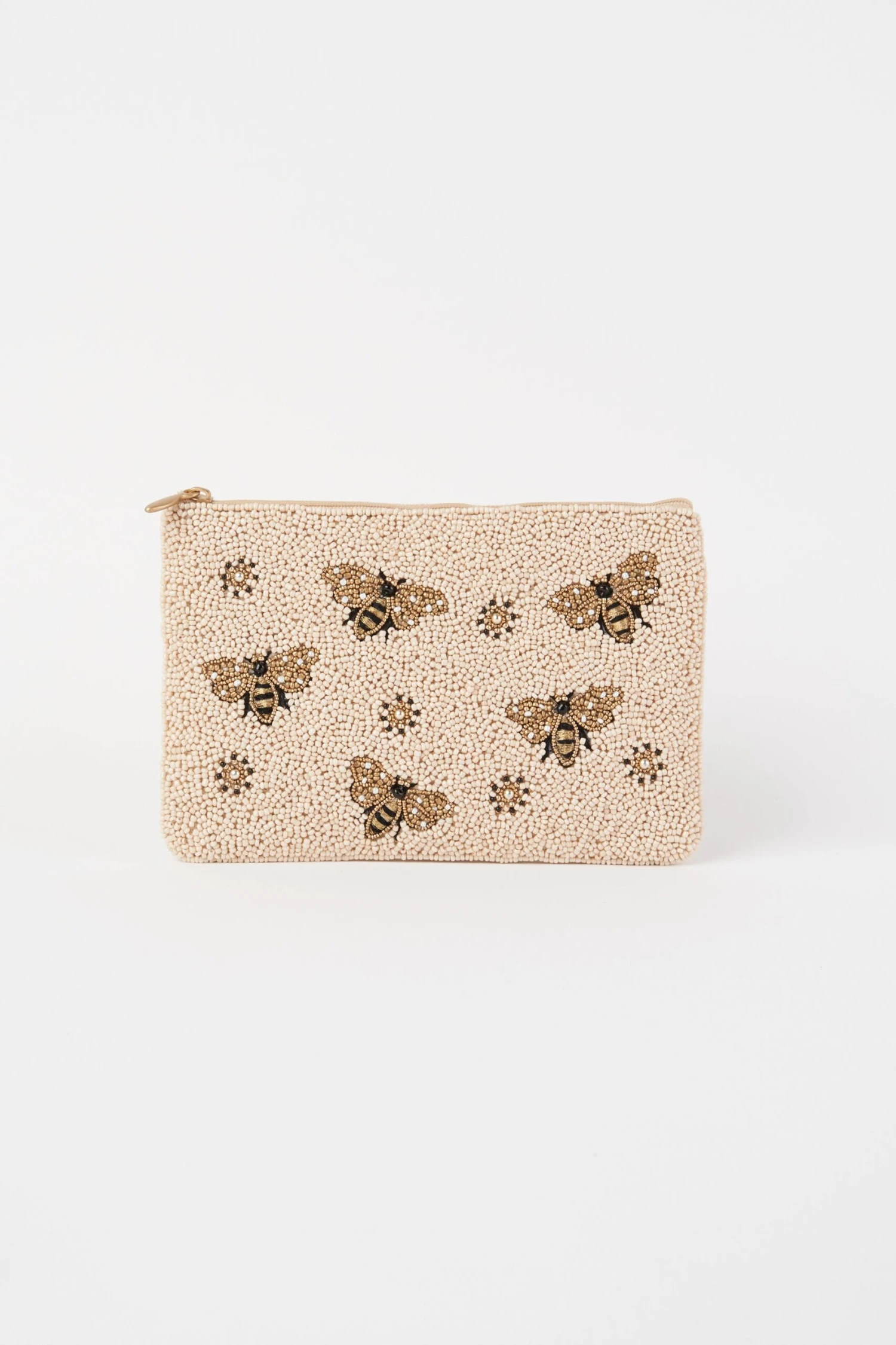 Keep all your beauty essentials safe in our Gold Bee Cosmetic Bag. Featuring a sweet bee and flower beaded motif, this is a stylish bag that can easily slip into a larger tote.