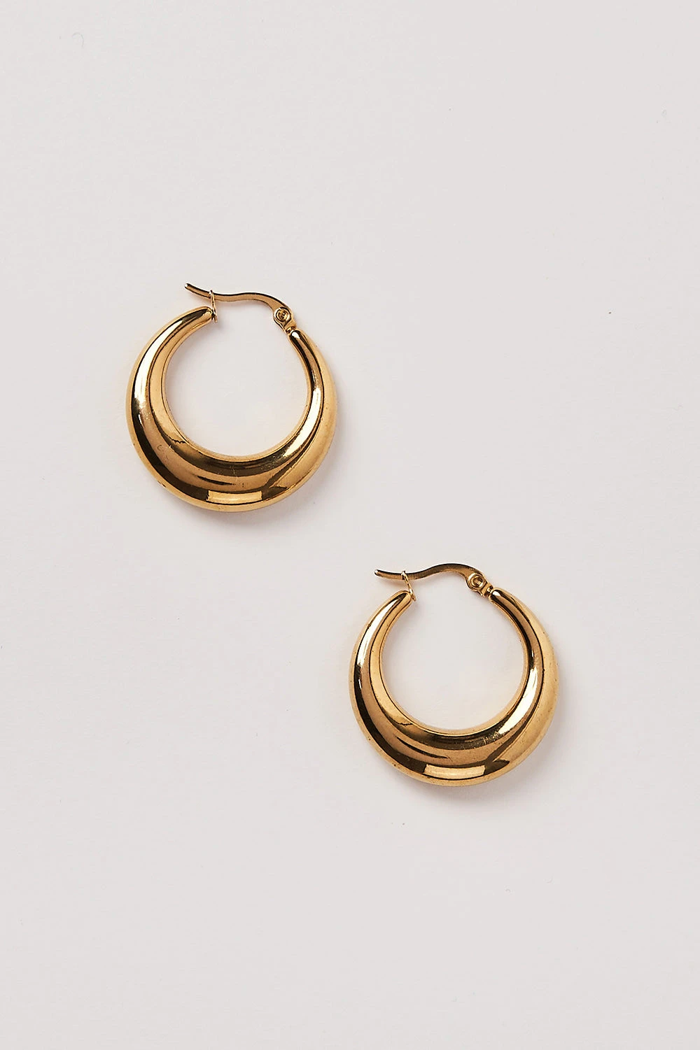 A chunky but lightweight Gold Hoop Earring in an on-trend crescent shape. These lovely gold-tone hoops will easily pair with your everyday looks.