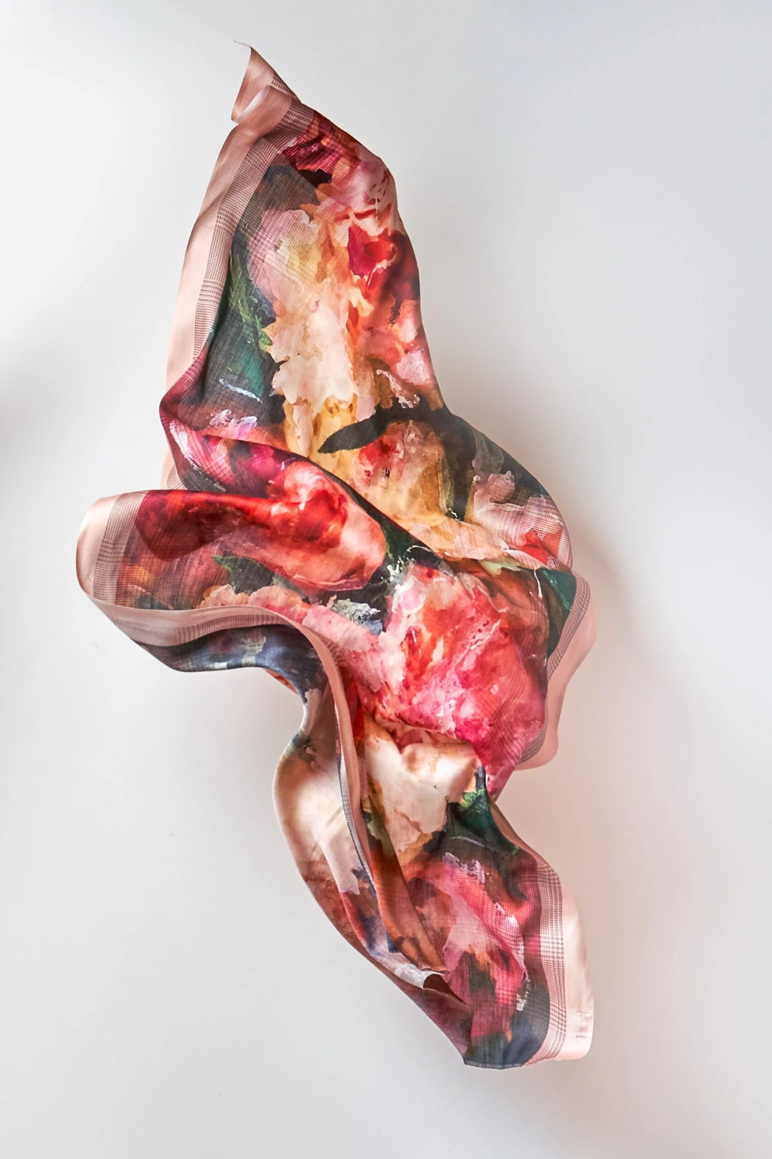 Embrace your inner artiste with this 100% silk scarf. An homage to some of France’s most beautiful watercolour paintings with the added interest of a houndstooth border, this is a soft and lightweight scarf bursting with colour and life.