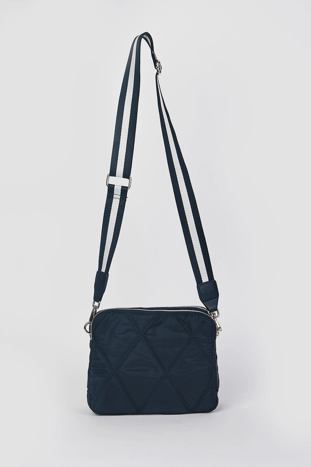 This stylish crossbody bag makes a lovely travel companion. Featuring ample and secure storage for all your personal belongings, adjust the chic striped strap to make this Ink and White travel bag the perfect length pour toi.