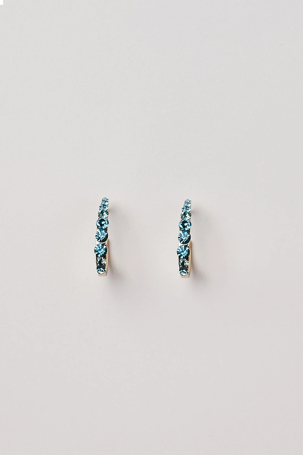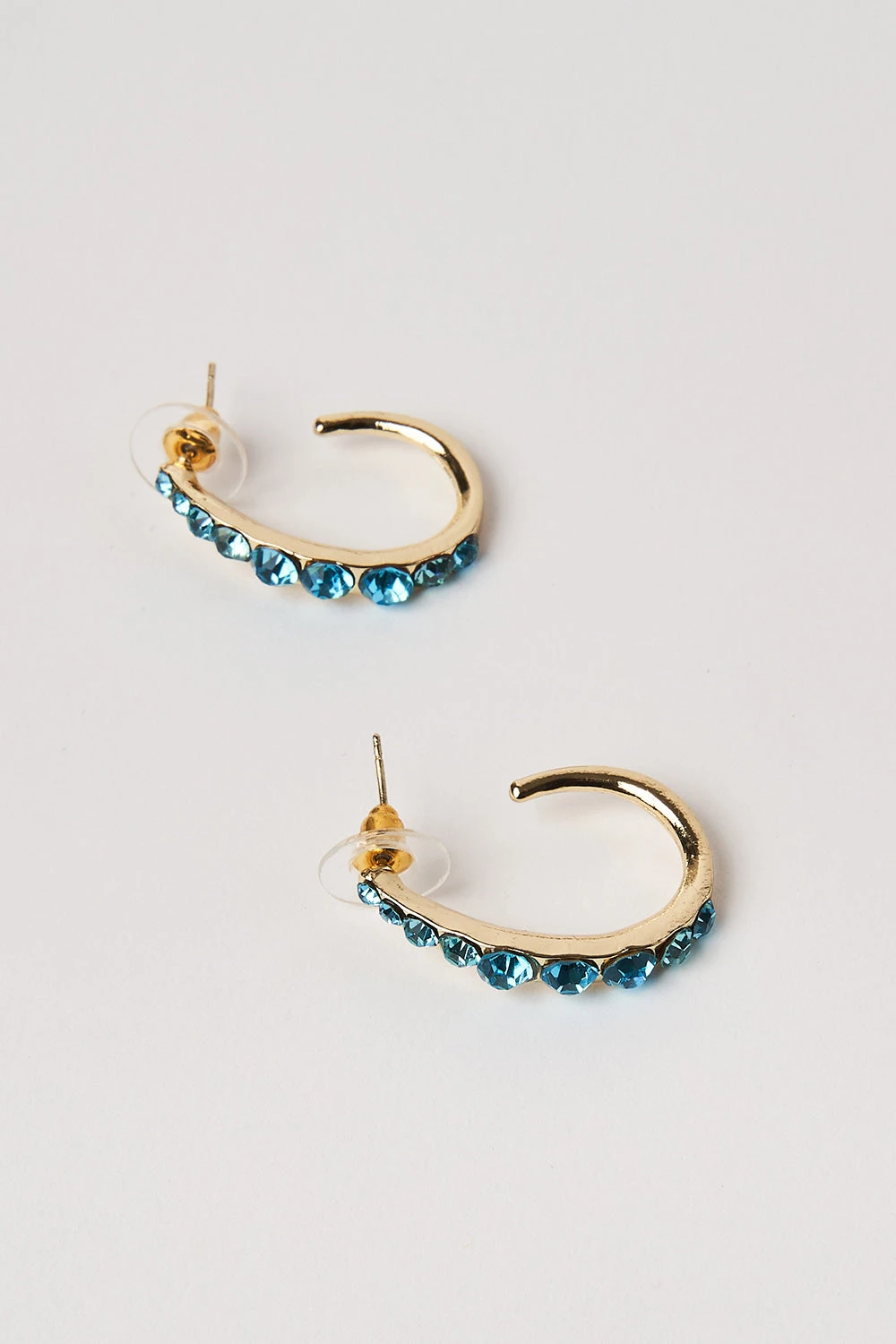 Distinctive and elegant, our Jewel Blue Hoop Earrings have been inspired by an aquamarine gemstone. Featuring shimmering glass beads which are graduated along a gold half hoop, add this sweet hint of glint to your next outfit.