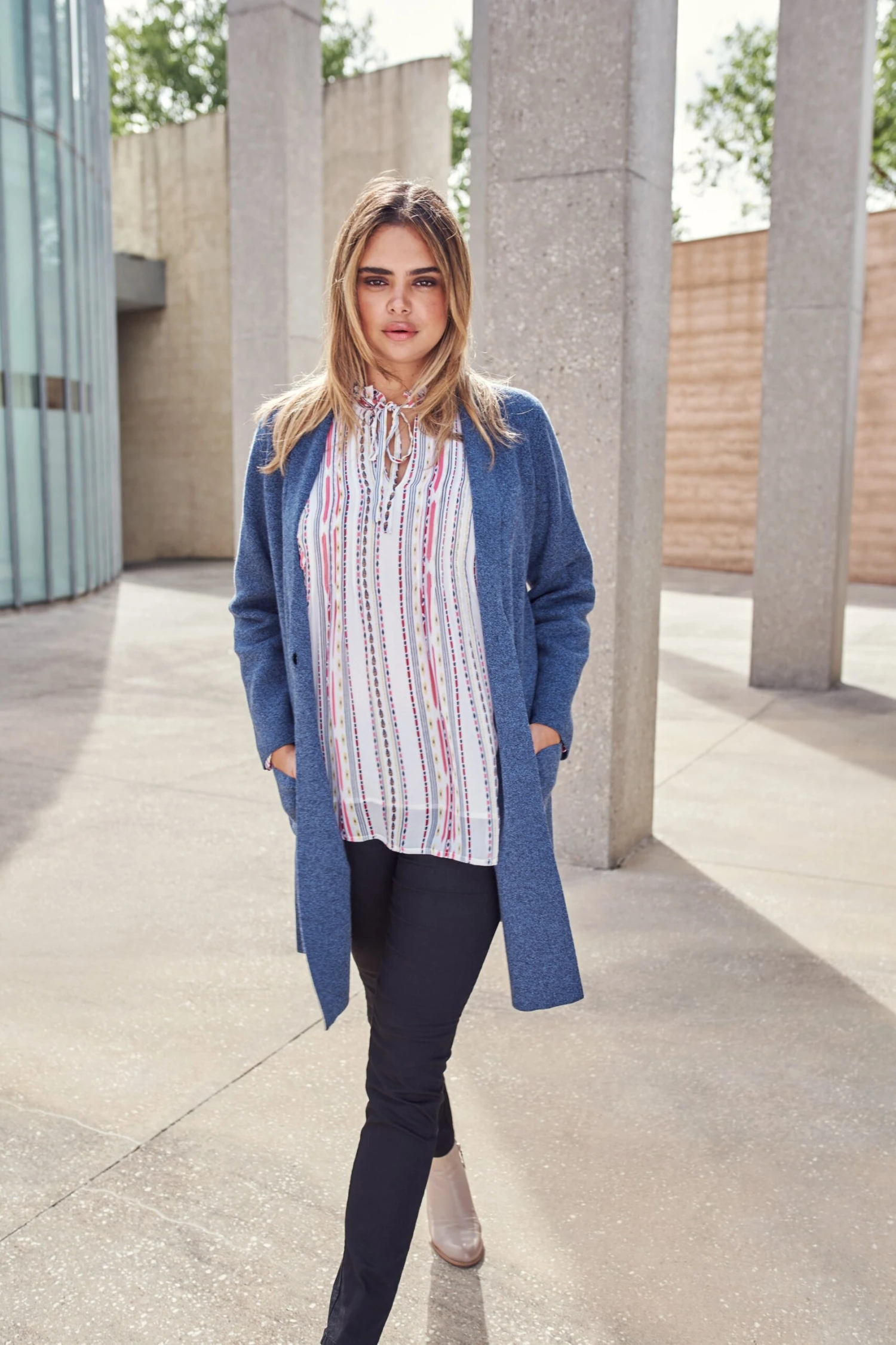 Magnifique! Perfect for the shifting seasons, our knitted trench has been crafted from a cotton wool blend. With stylish design details, such as its blazer style collar, we love this jacket as our Autumn go to. Style it with our Bengajean® Velvet Skinny Leg and one of our beautiful scarves for an effortlessly elegant look.
