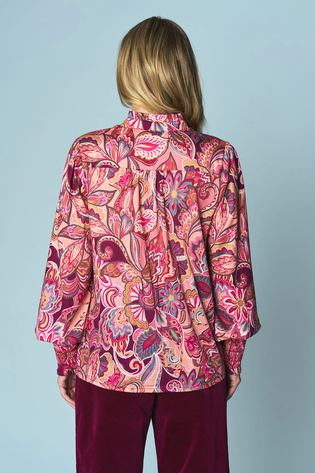 This printed cotton shirt is designed in our vibrant L’Abreuvoir Paisley print, a multicolour print exclusive to Blue Illusion. Lightweight and breathable, this top has a flattering notched V neckline with a ruffle and frill detail on the collar. Complete with a smart puff sleeve and crafted from 100% cotton, this is a bright and easy option for a casual look.