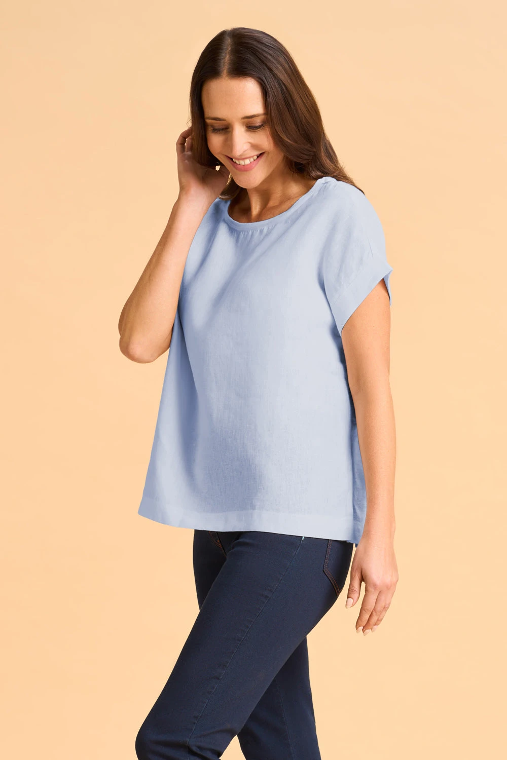A Blue Illusion favourite, our Linen Mix Top now comes in a wide range of colours including Soft Blue. Featuring a woven linen front and jersey linen back, this top is not only ultra-comfortable but versatile. Dress it up or wear it with our signature Bengajean® for a smart casual look.