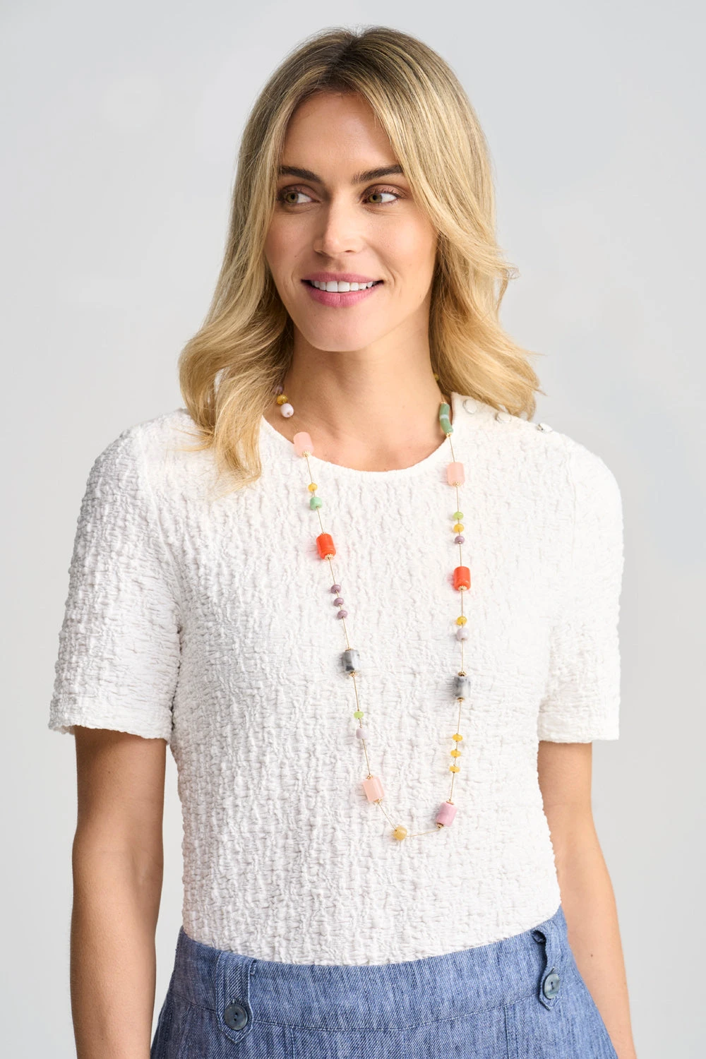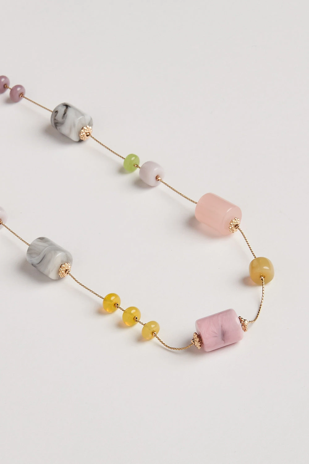 Drawing on the pastel colours of Impressionist paintings comes our Multi Resin Necklace. A long layering piece featuring hints of strong orange, this necklace can also be doubled over. Modern and colourful but not overpowering, this is an accessory must-have.