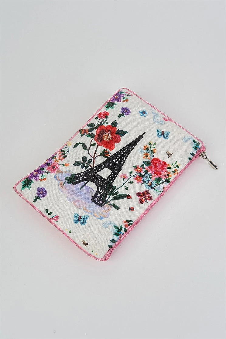 Your mum will love having a place to keep all her beauty essentials safe in this Parisian-inspired cosmetic bag. Featuring La Tour Eiffel with intricate seed bead detailing and designed by our Blue Illusion muse Nathalie Lété, this cosmetic bag is great for those on-the-go. Slip it into your tote for weekends away.