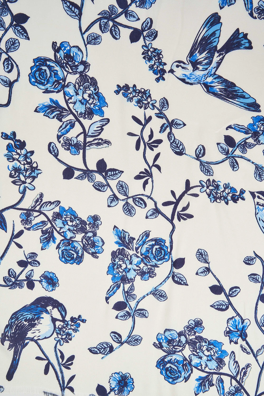 Blue is trending across our accessories this winter. Delight in our two-tone Nightingale Floral Scarf crafted from a super soft modal and silk blend. It features a sweet nightingale, floral and foliage design.