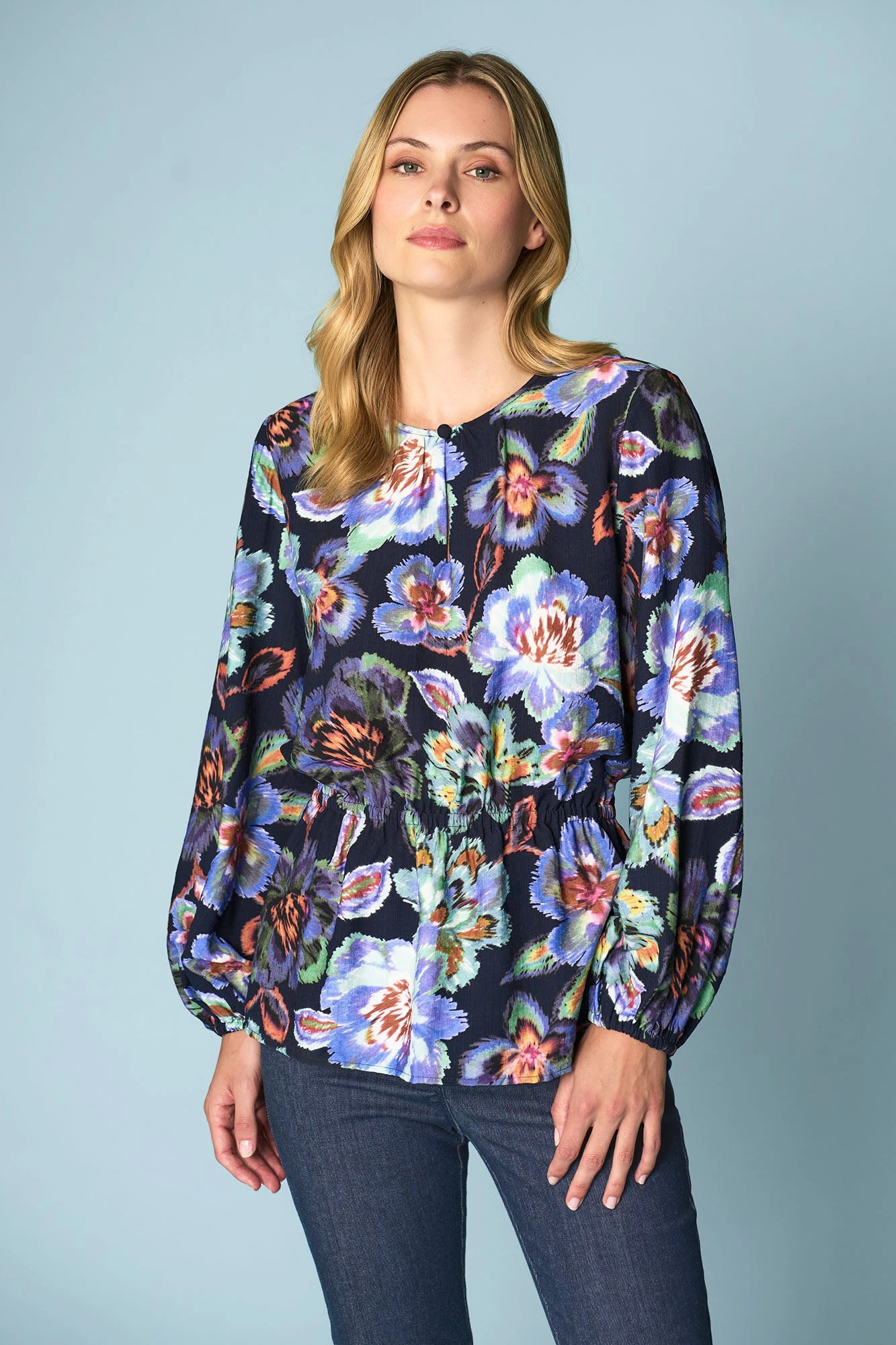 Our Painterly Flower Blouse is an elegant and feminine take on a classic style. This lightweight blouse makes its mark with an elasticated waist to flatter the figure. The full-length sleeve is great for days with a little chill in the air. For effortless styling, wear it with our Bengajean® Frenchie Straight Leg and Elodie Boot in Hunter Green.
