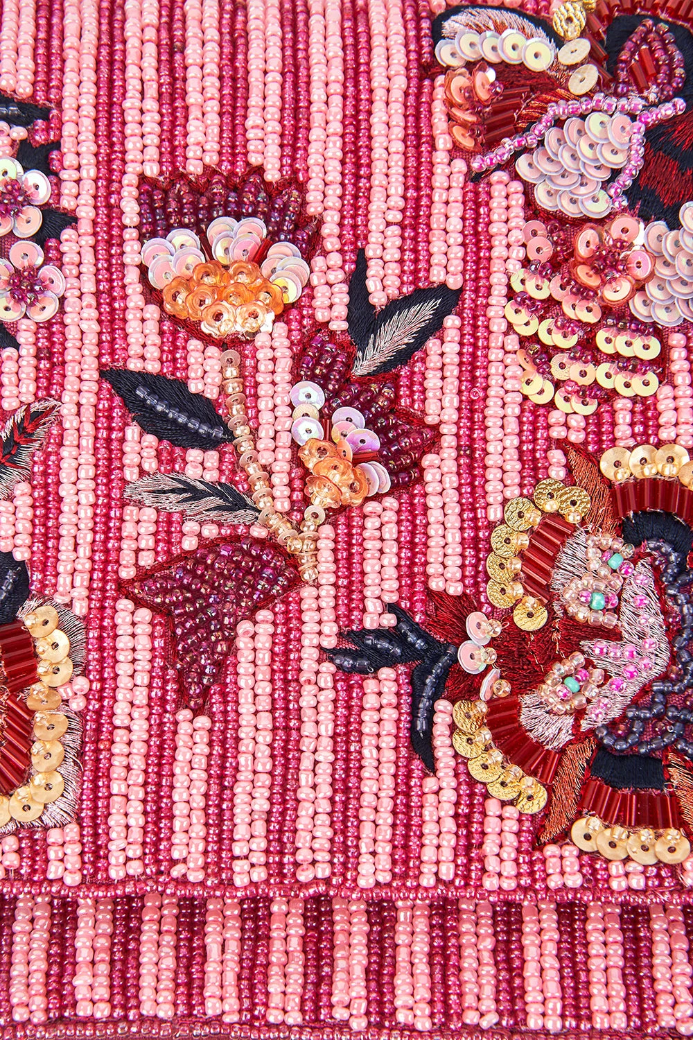 Create a visible contrast to your look with the bright pink and red striped effect of our Paisley Beaded Clutch. Adorned with sequins and seed beads to create sweet floral motifs, there is no shortage of visually striking details on this accessory. The magnetic clasp means your belongings will be safe, secure and easily accessible. Styling this statement accessory is a treat.