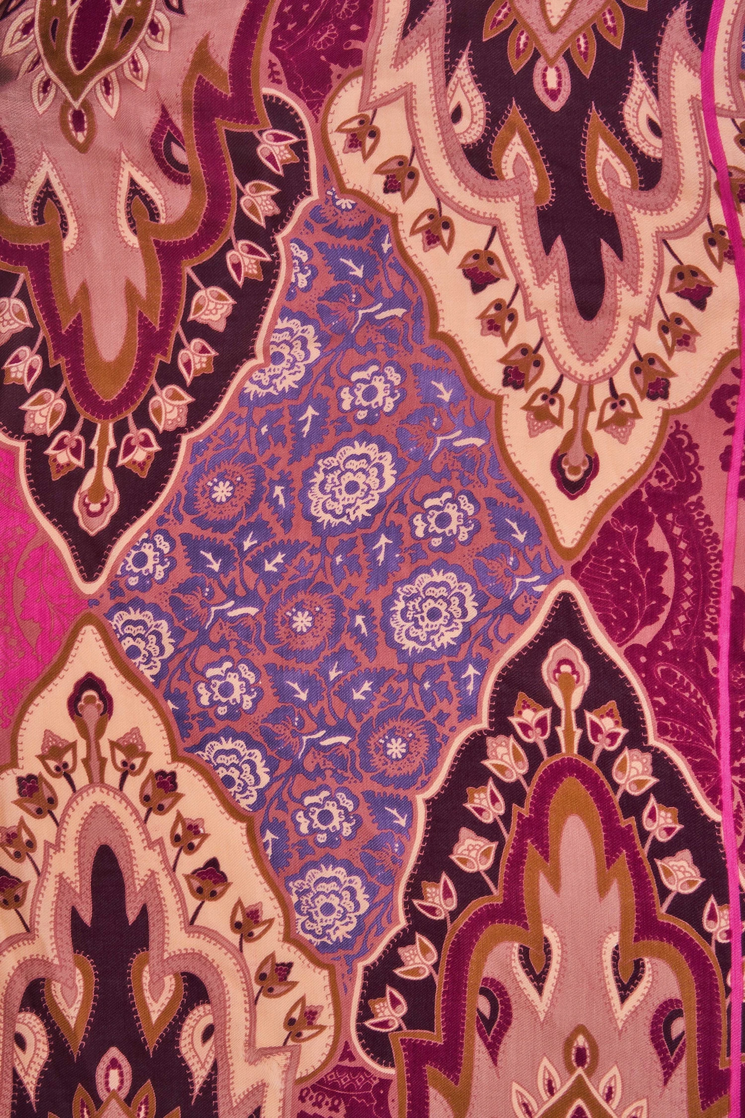This Paisley Border Print Scarf is reminiscent of walking amongst the trees in autumn. Made from a cotton and wool blend, this bohemian-inspired scarf will not only warm you but add a beautiful colourful layer to your look. Featuring tones of purple, pink and mustard, this is a must-have accessory for your collection.