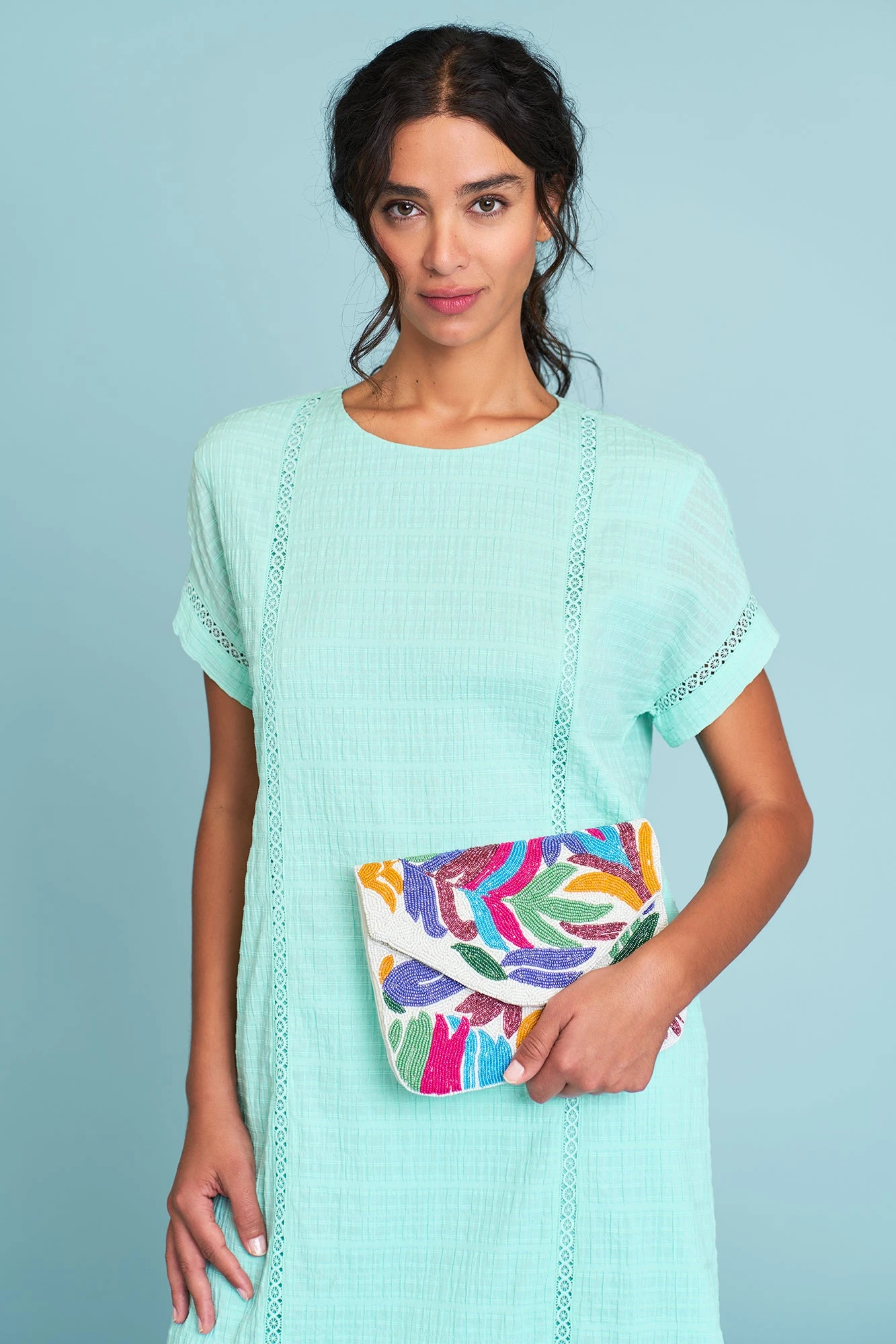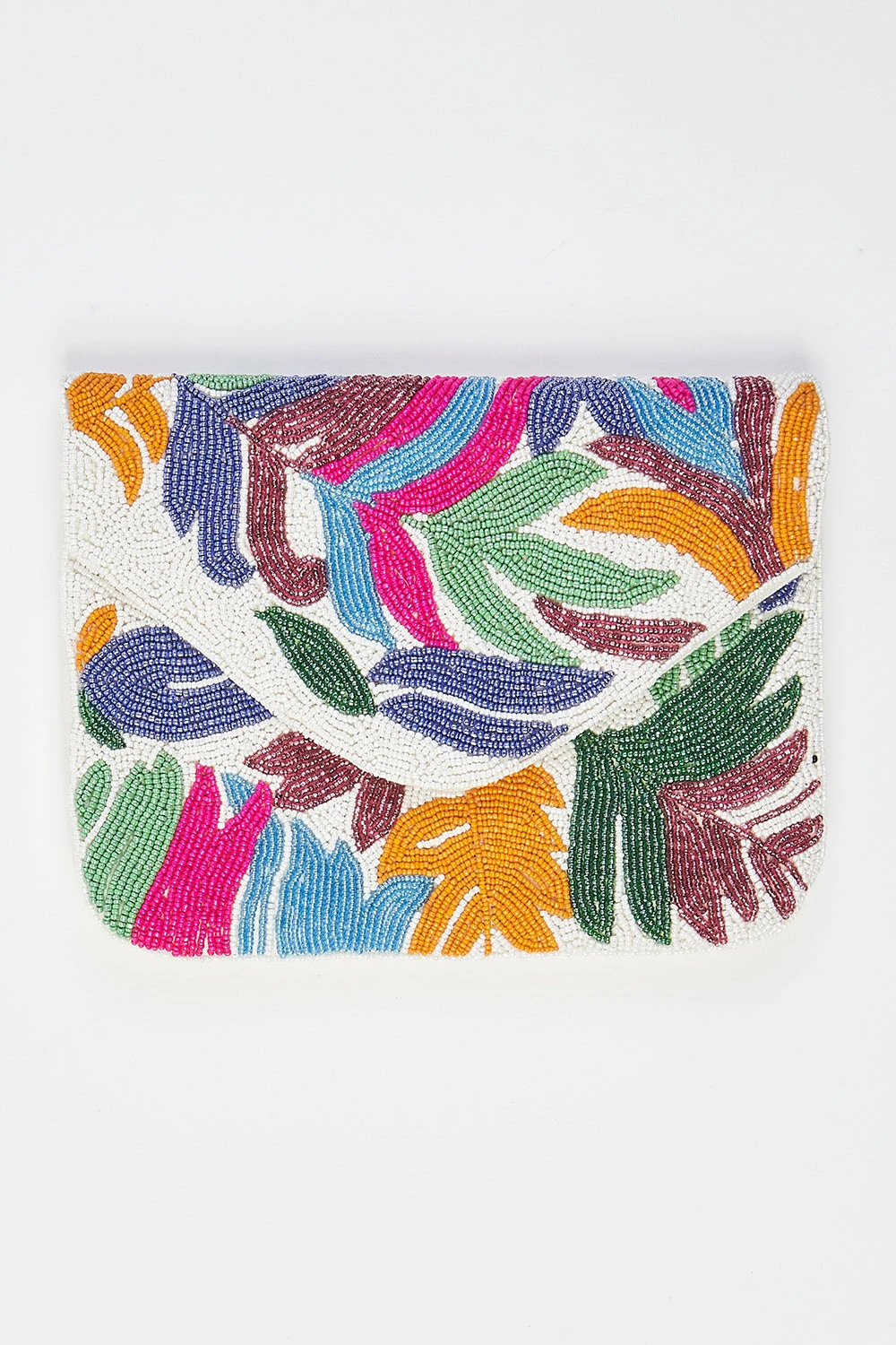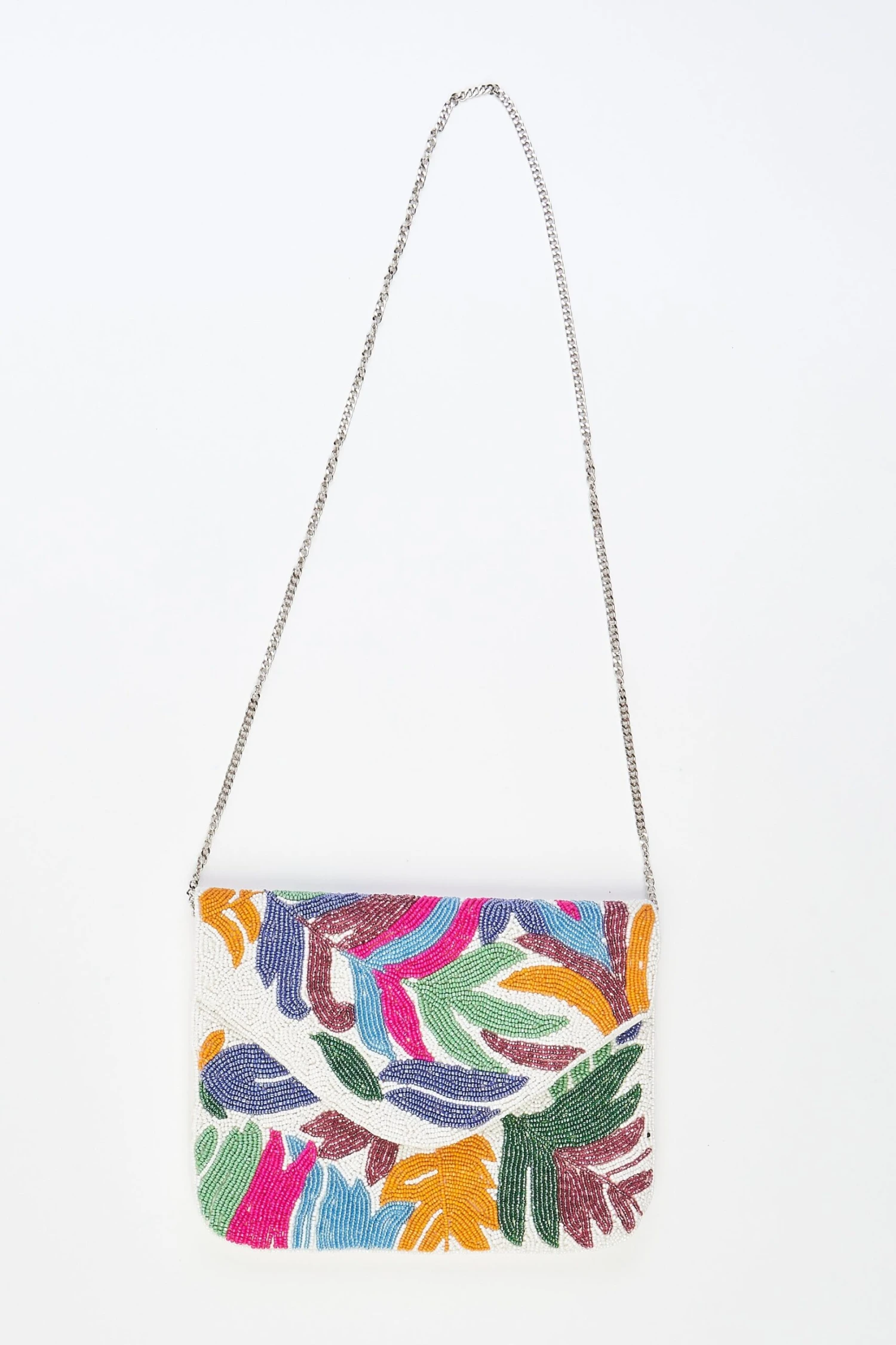 Our Palm Leaf Beaded Clutch is reminiscent of Saint Tropez’s tropical feel. In an on-trend envelope style, this clutch is also versatile. In a moment’s notice this clutch can become a shoulder bag with its silver chain shoulder strap. Featuring full seed bead decoration this is a clutch you’ll want to take everywhere.