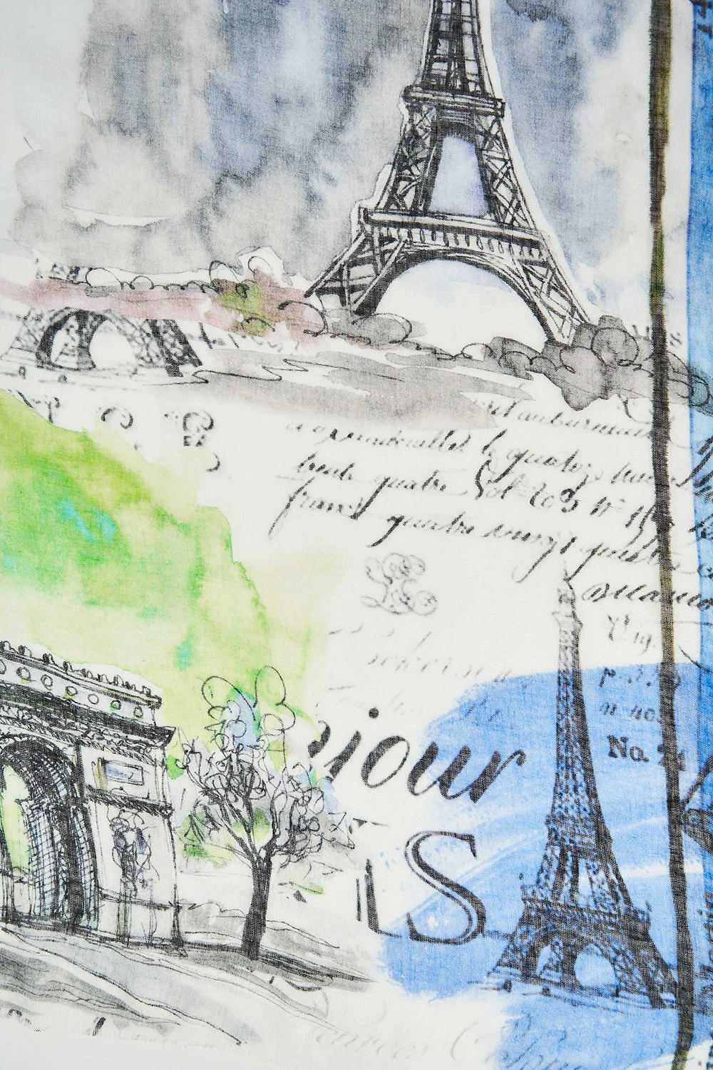 Evoking a postcard feel, the design of our transeasonal Paris Watercolour Scarf is a love letter to France. With notable landmarks and typical Parisian streets with a moody blue border, what better scarf to wear in celebration of le quatorze juillet? Crafted from modal and linen.