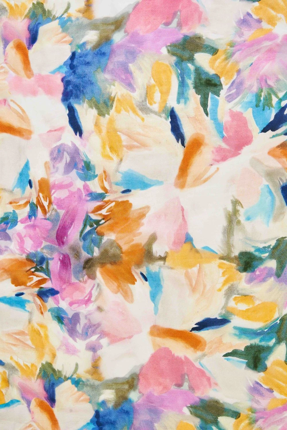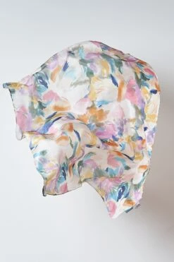 Inspired by the streets of Paris, this picturesque scarf depicts abstract flowers. Delicately printed on 100% silk chiffon, it has rich pink and blue tones with hints of green, yellow and orange. The Faded Floral Square Scarf will add an elegant finish to your look.