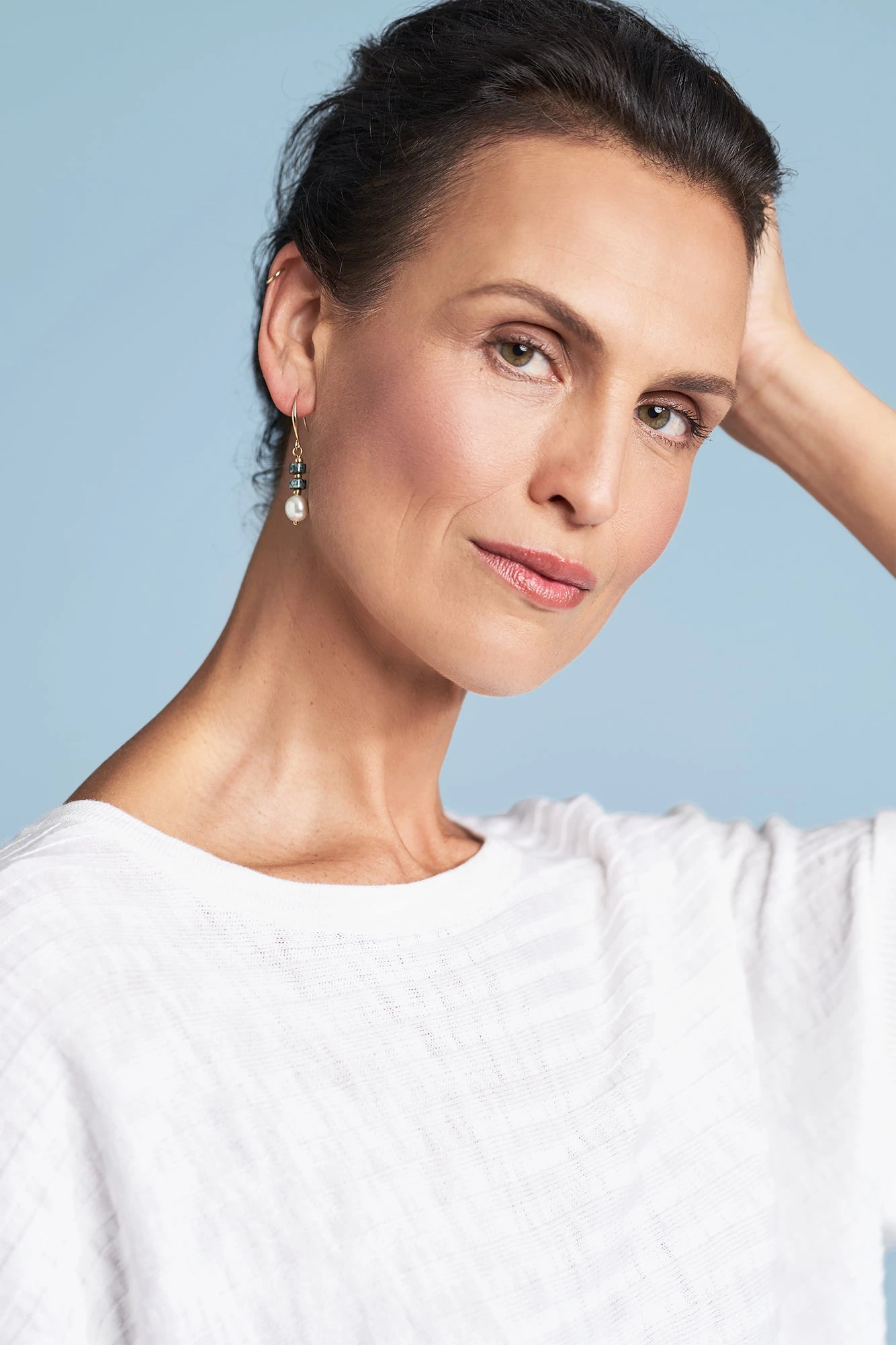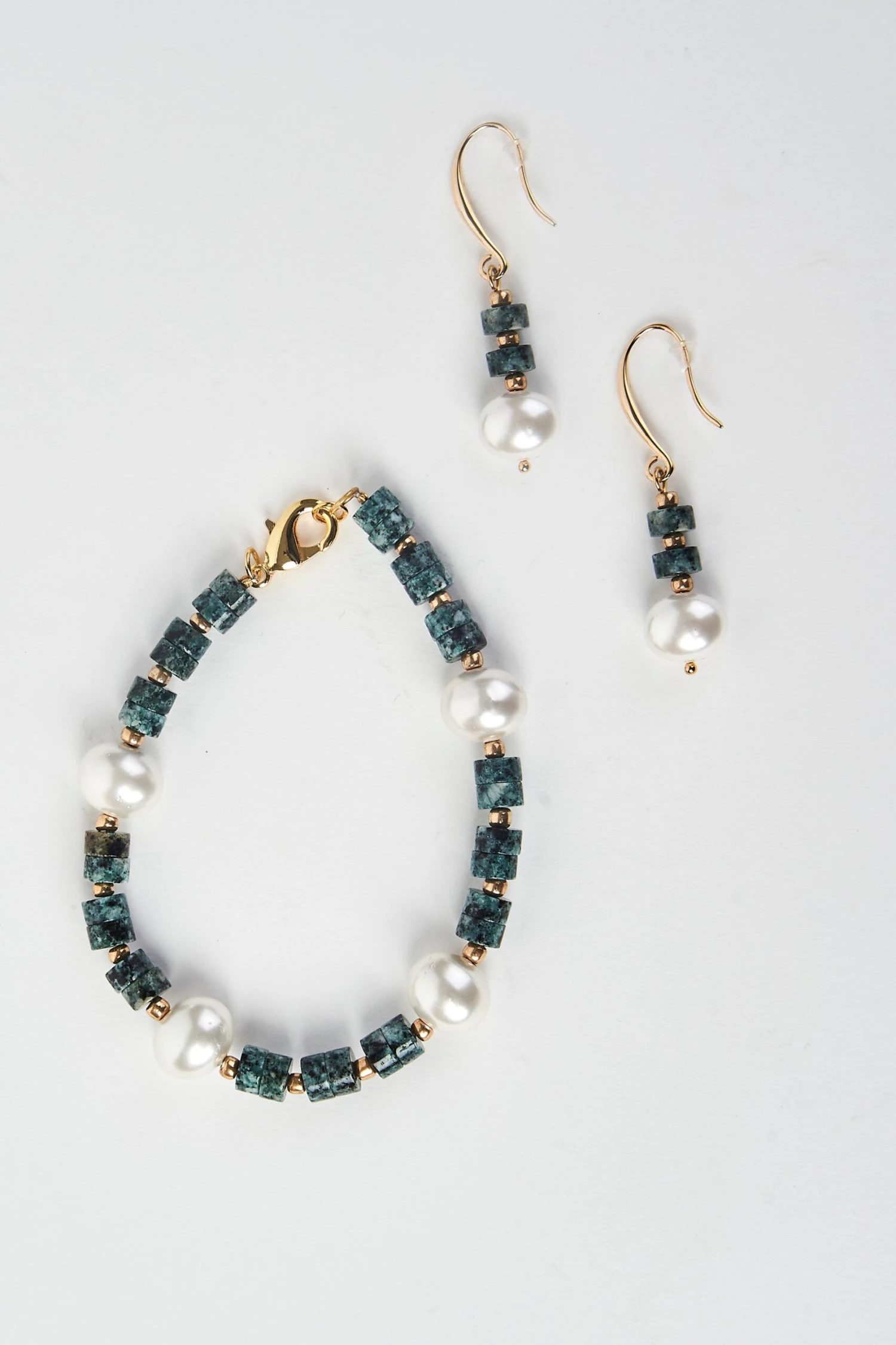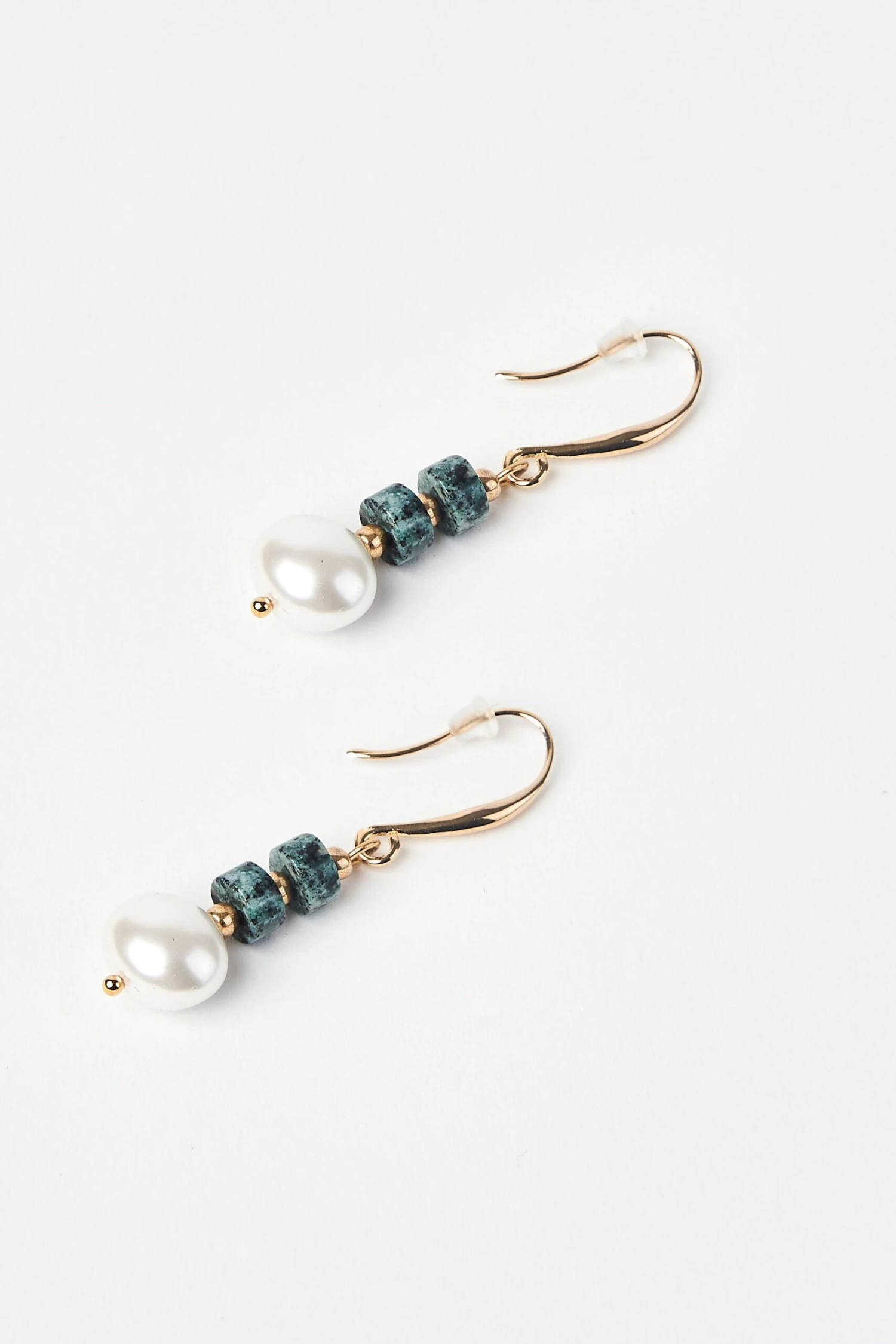A timeless accessory with a modern twist, say bonjour to our Pearl Resin Earrings. These earrings offer a pearl drop and two emerald granite-inspired beads on a comfortable fish hook. For those who love a matching set, pair these earrings with our Pearl Resin Bracelet.