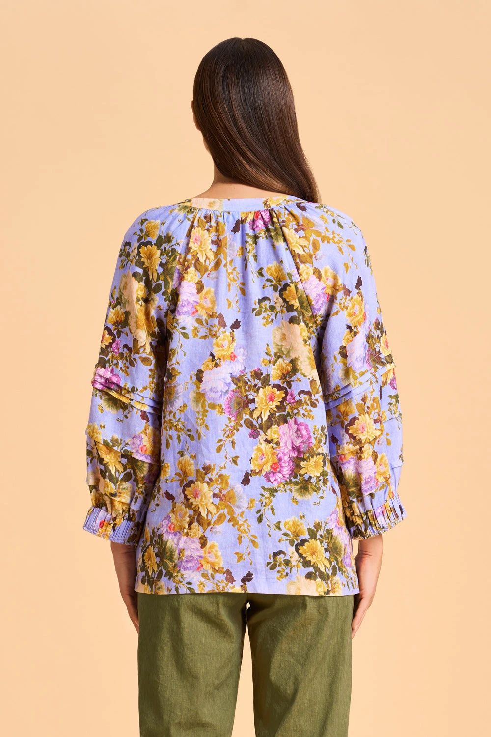 A season of whimsy est ici with our Pleat Sleeve Linen Blouse. In our Australian, Chantilly Rose print, this blouse is crafted from 100% French linen and features a chic cutaway V neckline and ¾ sleeve. Pair this blouse with your favourite formal or casual base.