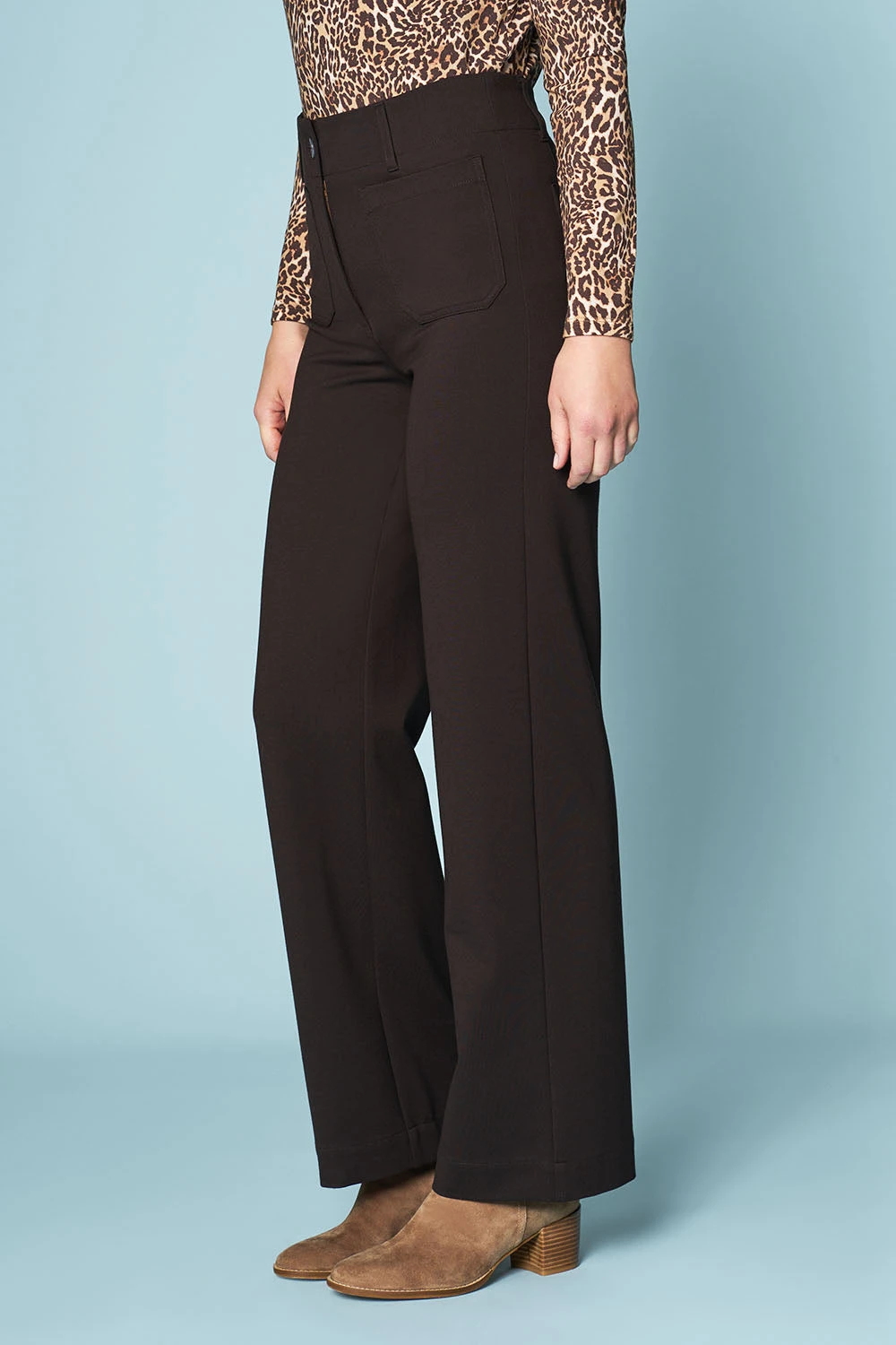 This on-trend pant has a fabulous wide leg silhouette, which has been designed to flatter. Crafted from a smooth and comfortable stretch ponte fabric, this unique Bark-coloured pant, looks gorgeous when paired with our Neck Twist Jersey Top in Leopard.