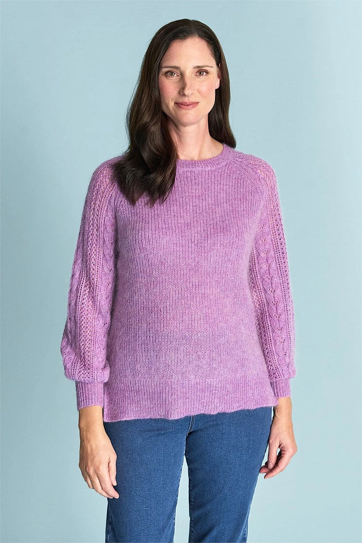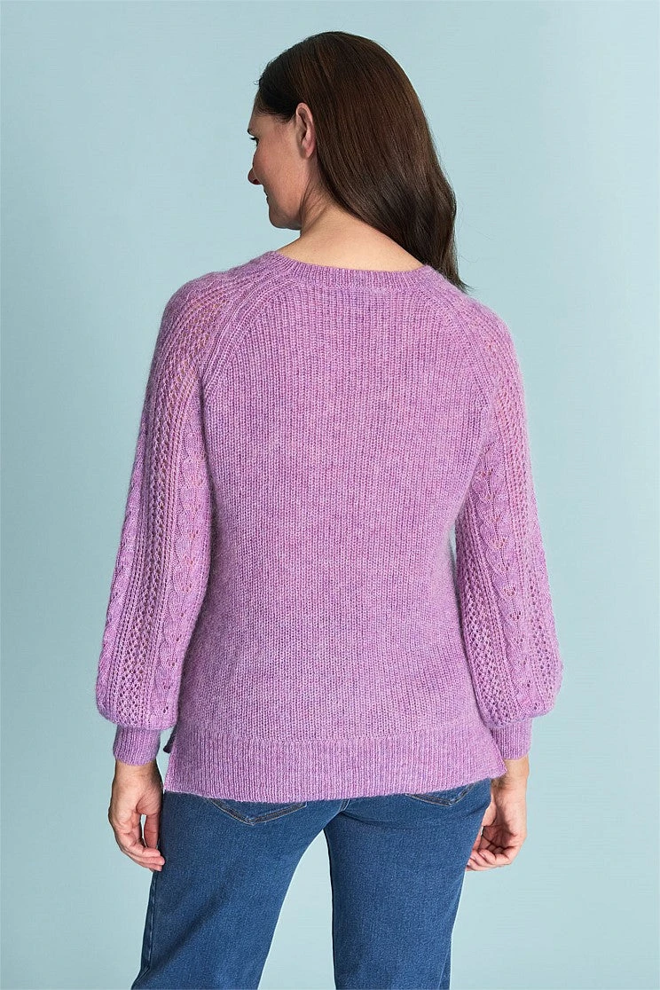 This ultra-soft jumper is crafted from a luxurious mohair blend and features the Lavender colour of our Rue Chanoinesse collection. Featuring a fashionable balloon sleeve with intricate pointelle detailing, add some colourful fun to your look by pairing this jumper with our Sequin Pencil Skirt.