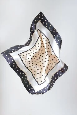 Featuring a fun Polka Dot Border print, this scarf is both soft and airy. Crafted from 100% silk twill, this Parisian-inspired scarf with its hint of vintage flair pairs beautifully with soft gold accessories. Add a touch of elegance to your next ensemble.