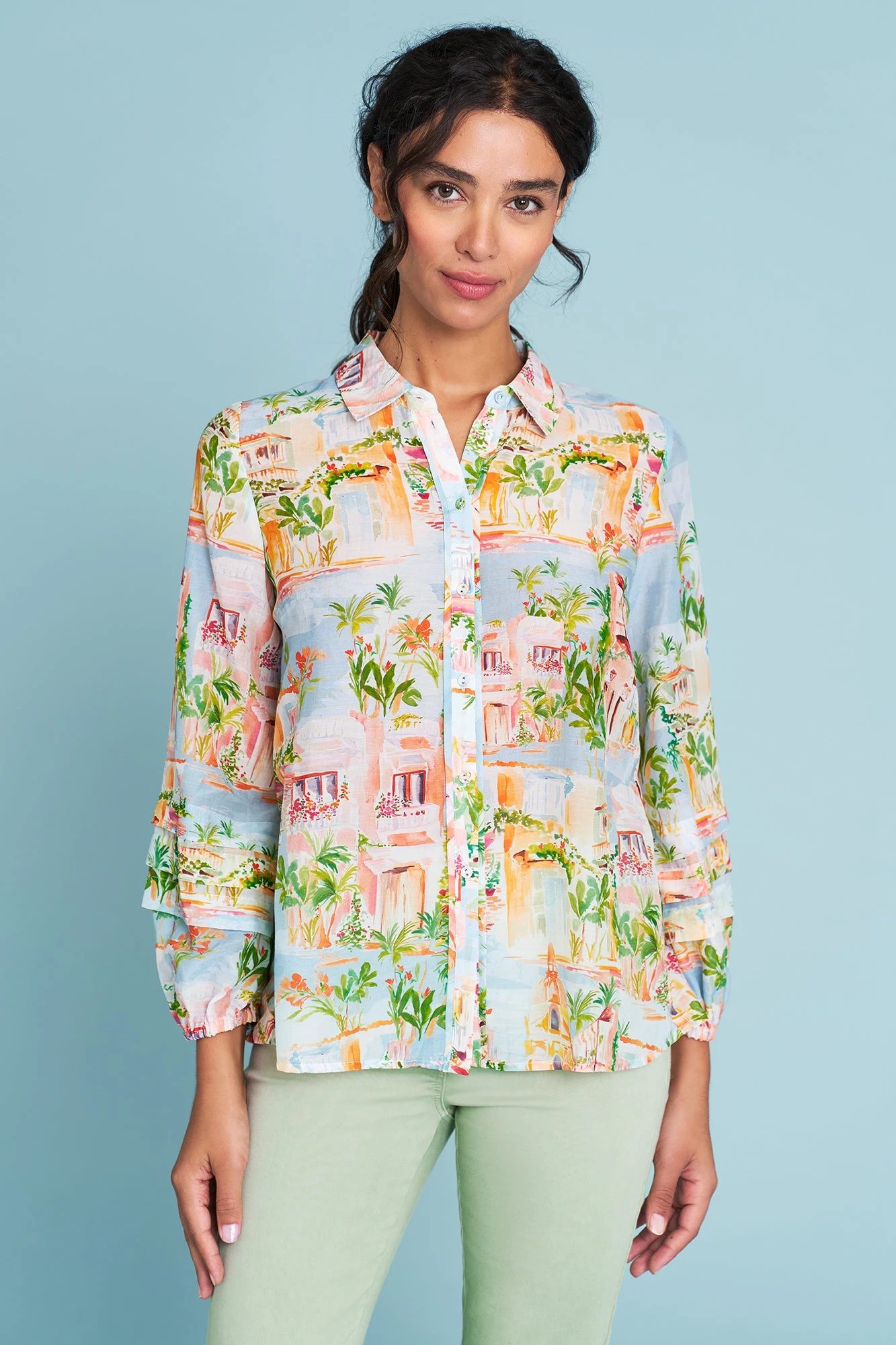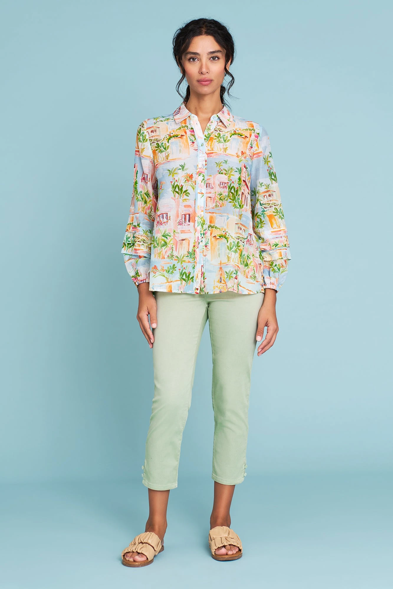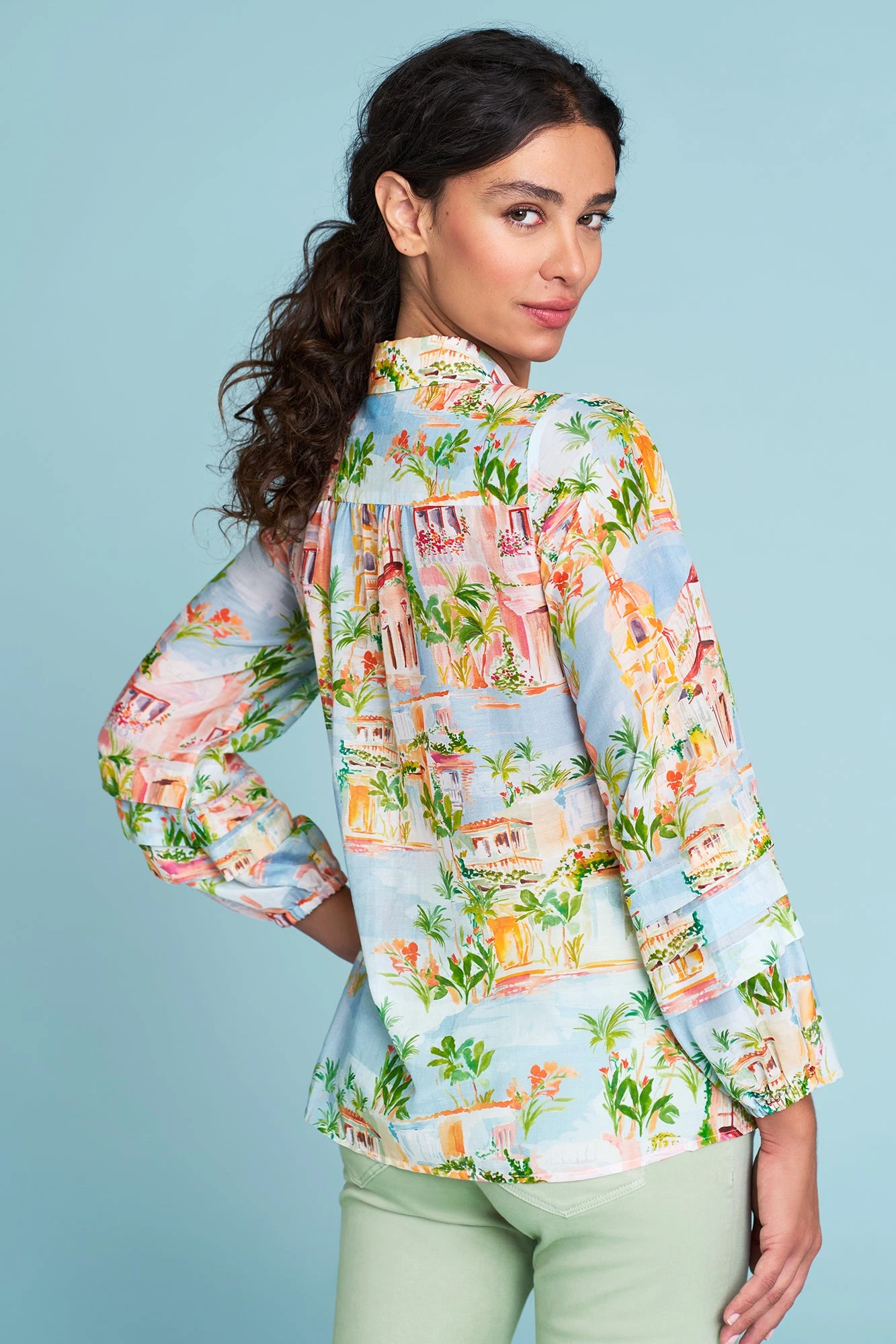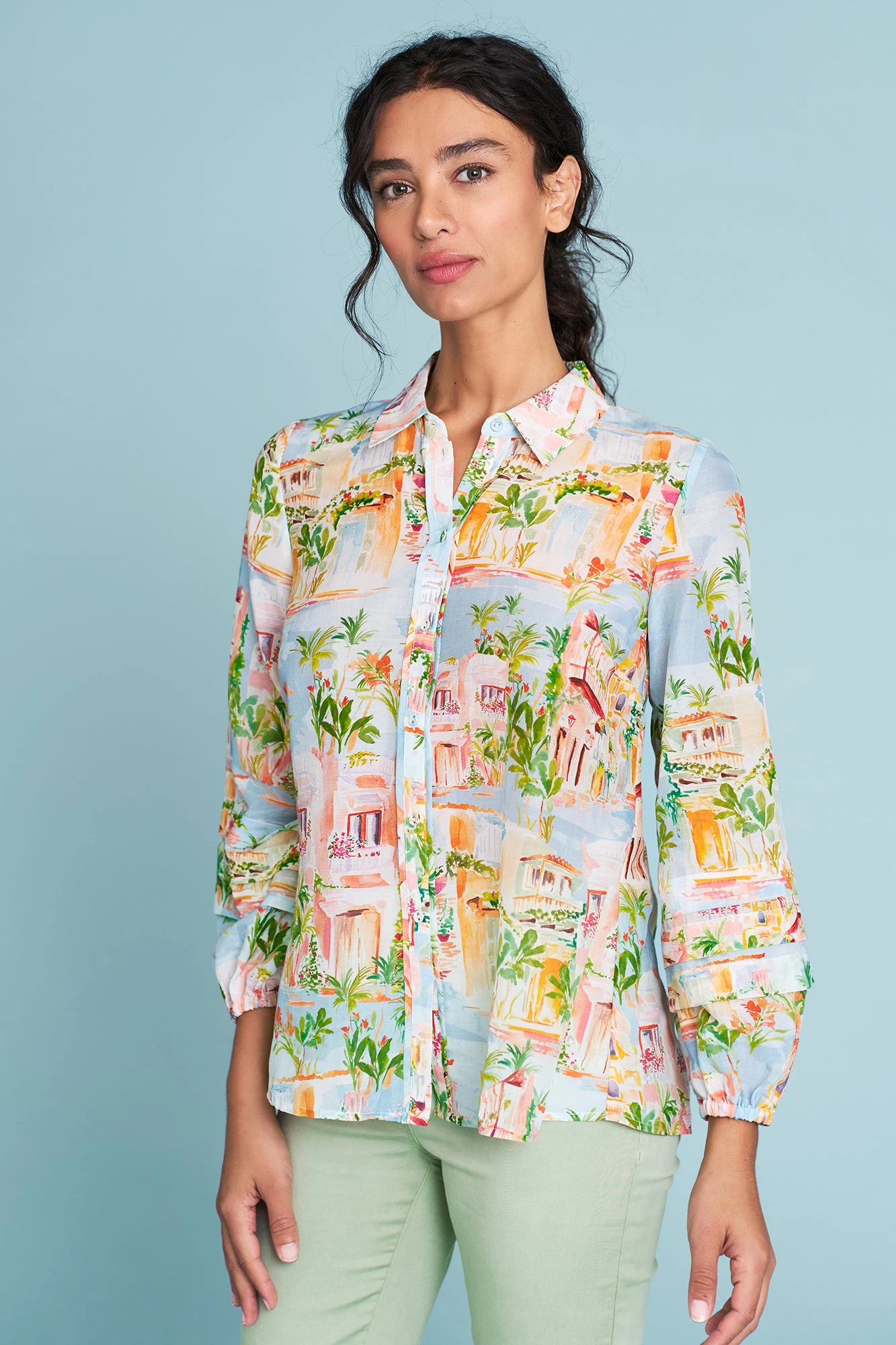 Crafted from a luxurious combination of cotton and silk, this delicate shirt features our conversational Cannes print inspired by the iconic destination. Offering classic shirt details as well as an on-trend, elasticated blouson sleeve, this shirt can be easily dressed up or down. For a fun ensemble, pair this shirt with our Stretch Pencil Skirt in Soft Pink.