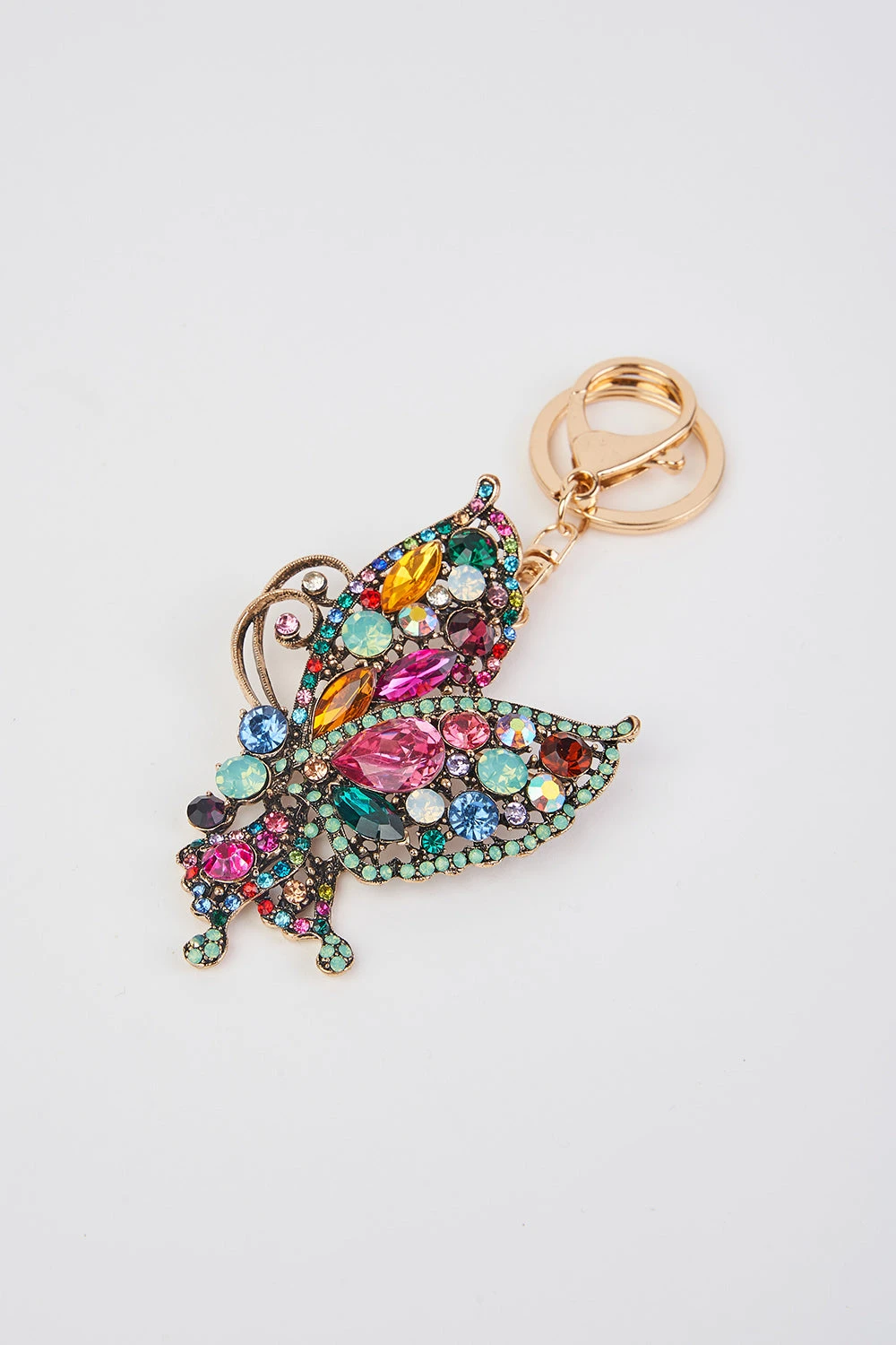 We adore a hint of whimsy, and this sparkling Rainbow Butterfly Keychain offers a fun addition to your keys or bag. Featuring a butterfly in profile adorned with a range of multicoloured glass jewels, attach this keychain to your bag’s zip, thin leather strap or your keys for a hint of glint.