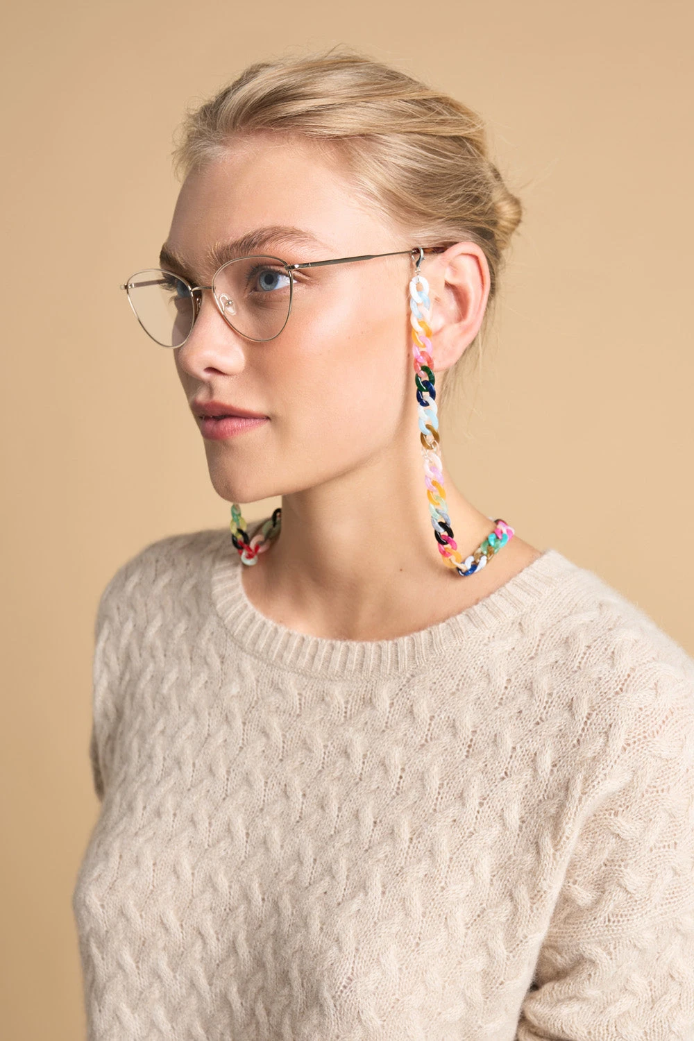 An instant, decorative update to your glasses or sunglasses is now possible with our groovy new Rainbow Link Glasses Chain. Modern, hip and lightweight, you’ll love the multicoloured links of this chain’s design. Easily adjust the rubber attachments to suit your frames and never misplace your glasses again!