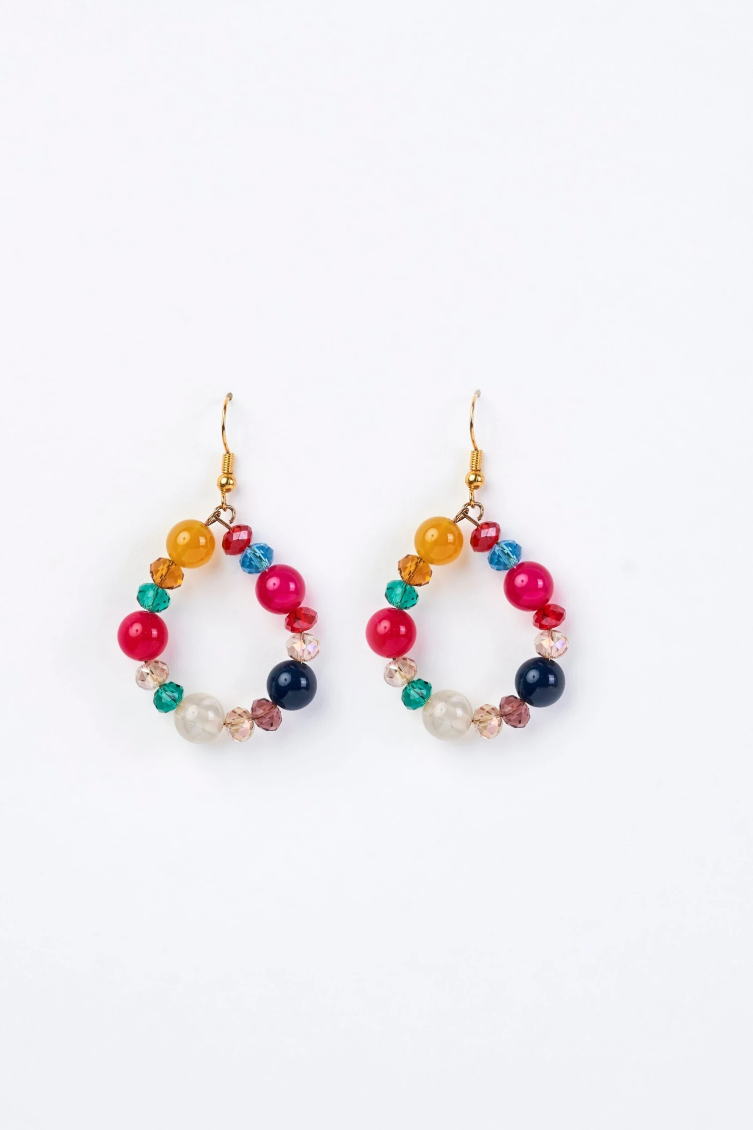 Bold colour is at the forefront of the design of our Rainbow Pearl Earrings. With a comfortable fish hook, these lightweight hoop-style earrings are a spring accessory must-have. Match these earrings with our rainbow multistrand necklace and let your colourful personality shine.