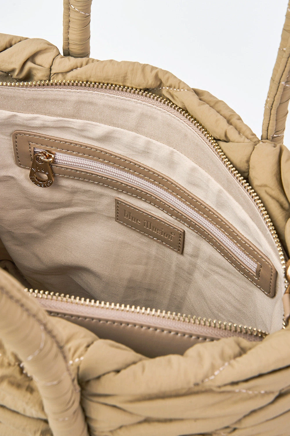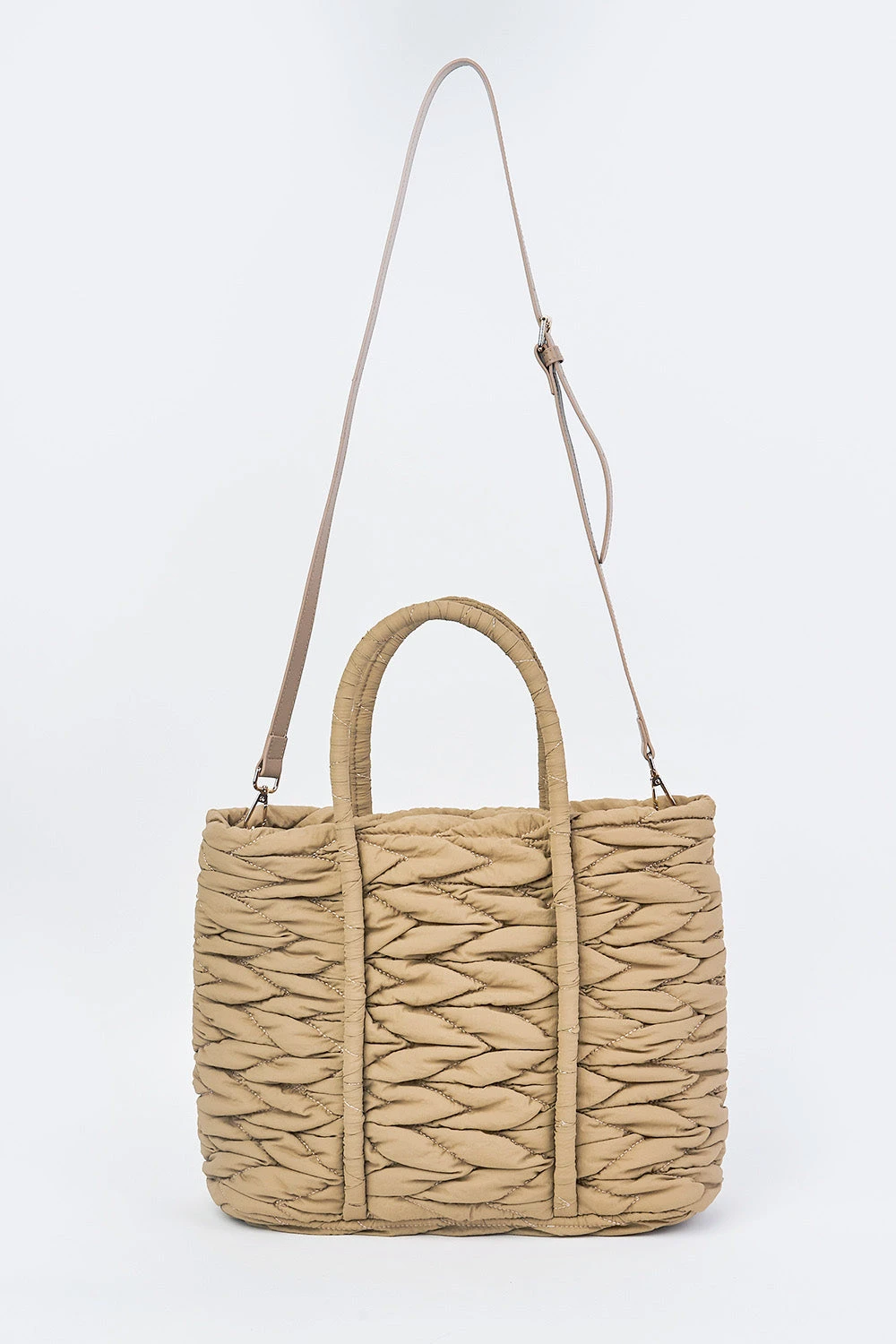 This transeasonal bag is incredibly lightweight and is as soft as a cushion to carry around! Showcasing trendy, detailed ruching and tubular handles in a neutral Stone colour, opening up you’ll find a roomy interior with an optional cross body strap which is both detachable and adjustable. Pair it back with our Tie Sleeve Raincoat.