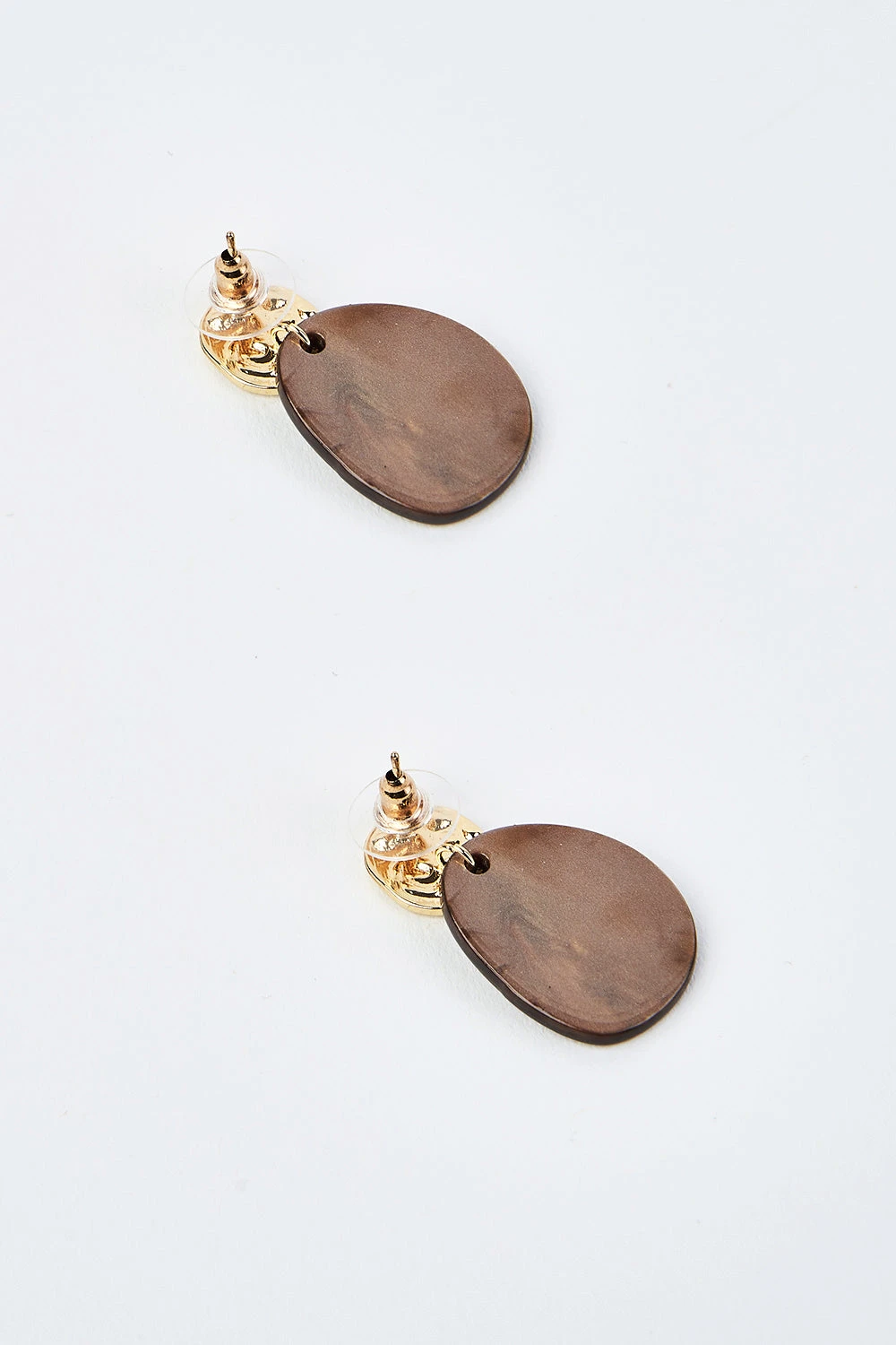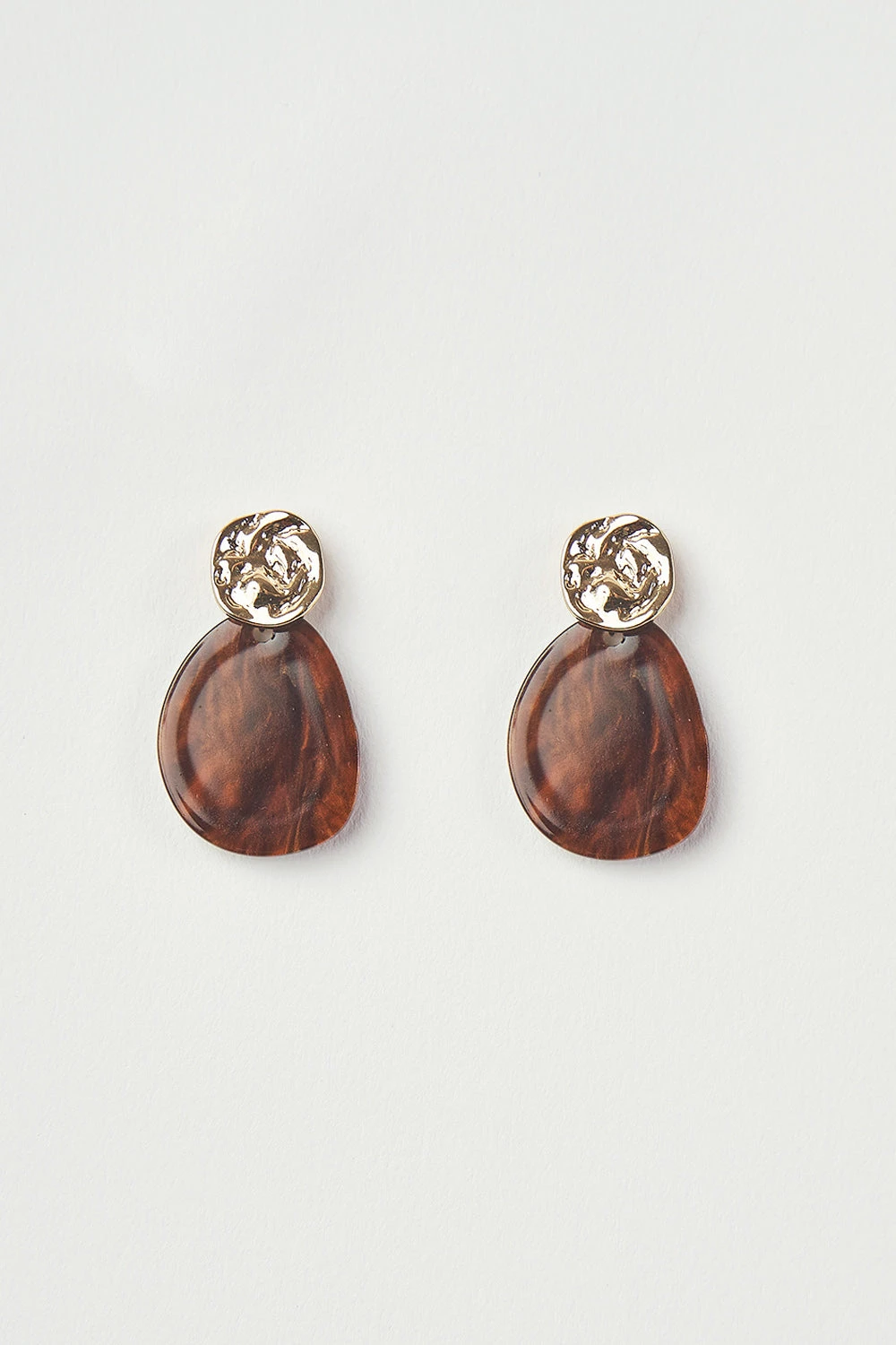 An accessory that will take you from day to night, our Resin Drop Earrings look stunning when paired with the Copper-coloured pieces of our Boulevard Saint-Germain collection. Featuring a hammered gold disc base, these beauties are complete with a natural-shaped resin drop.